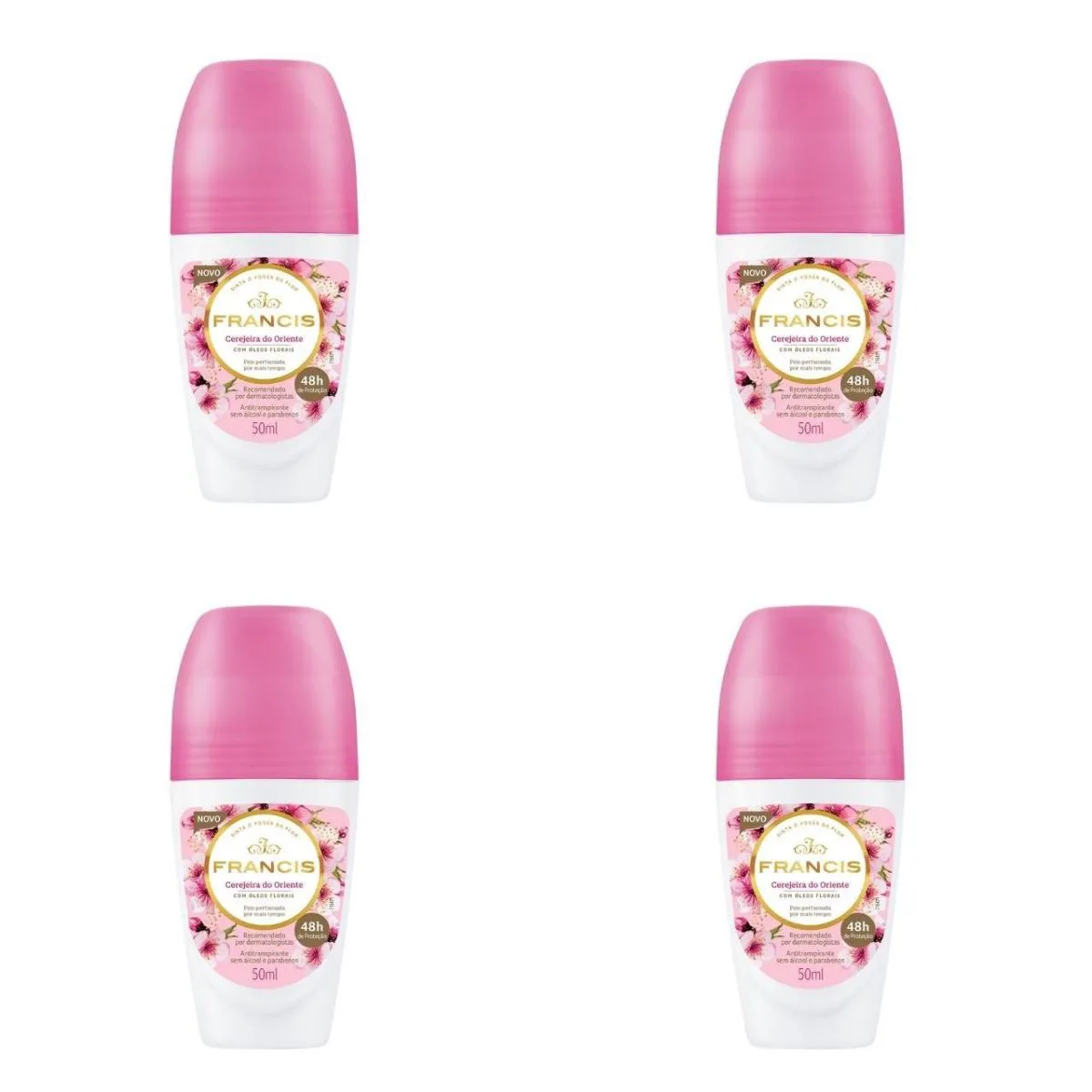 Kit c/4 Unidades de Desodorante Rollon Francis Hydrata 50ml Cerejeira Do Oriente.