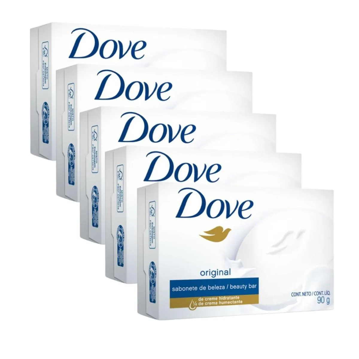 Kit c/5 Unidades de sabonete Dove 90g Branco.