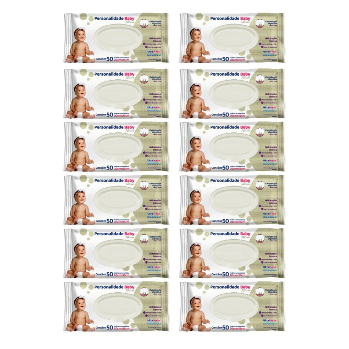 Kit C12 Lenço Umedecido Total Care C50 - Personalidade Baby