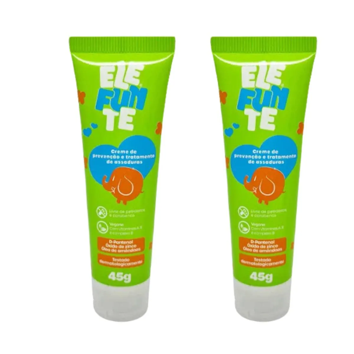 Kit C2 Creme Contra assaduras Elefante 45g Neste produto está sendo enviado 2(duas) unidades do Creme Contra Assaduras Elefante 45g Creme Contra Assaduras Elefante 45g O Creme Antiassaduras Elefante 45g oferece proteção eficaz e prolongada contra assaduras, irritações e vermelhidões na pele do bebê. Sua fórmula forma uma barreira protetora que impede o contato direto da umidade com a pele, mantendo-a hidratada, macia e saudável a cada troca de fralda. Diferenciais: