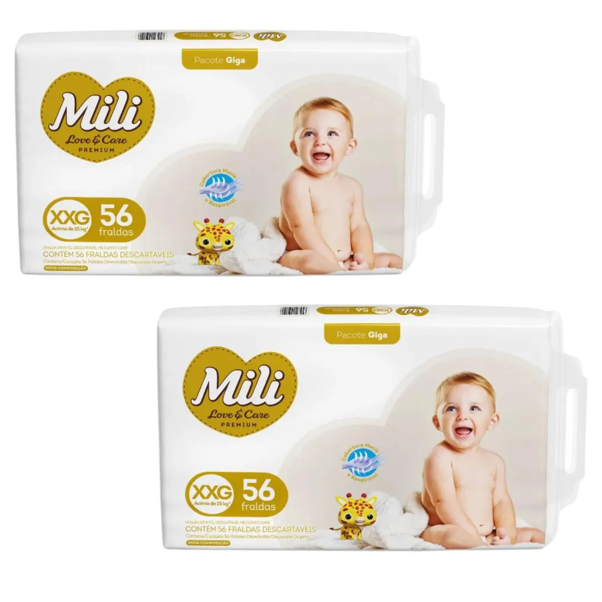 Kit C2 fralda Love & Care Premium XXG C56 - MiliFralda Mili Love & Care Premium XXG C56 – O Cuidado Que Seu Bebê Merece!