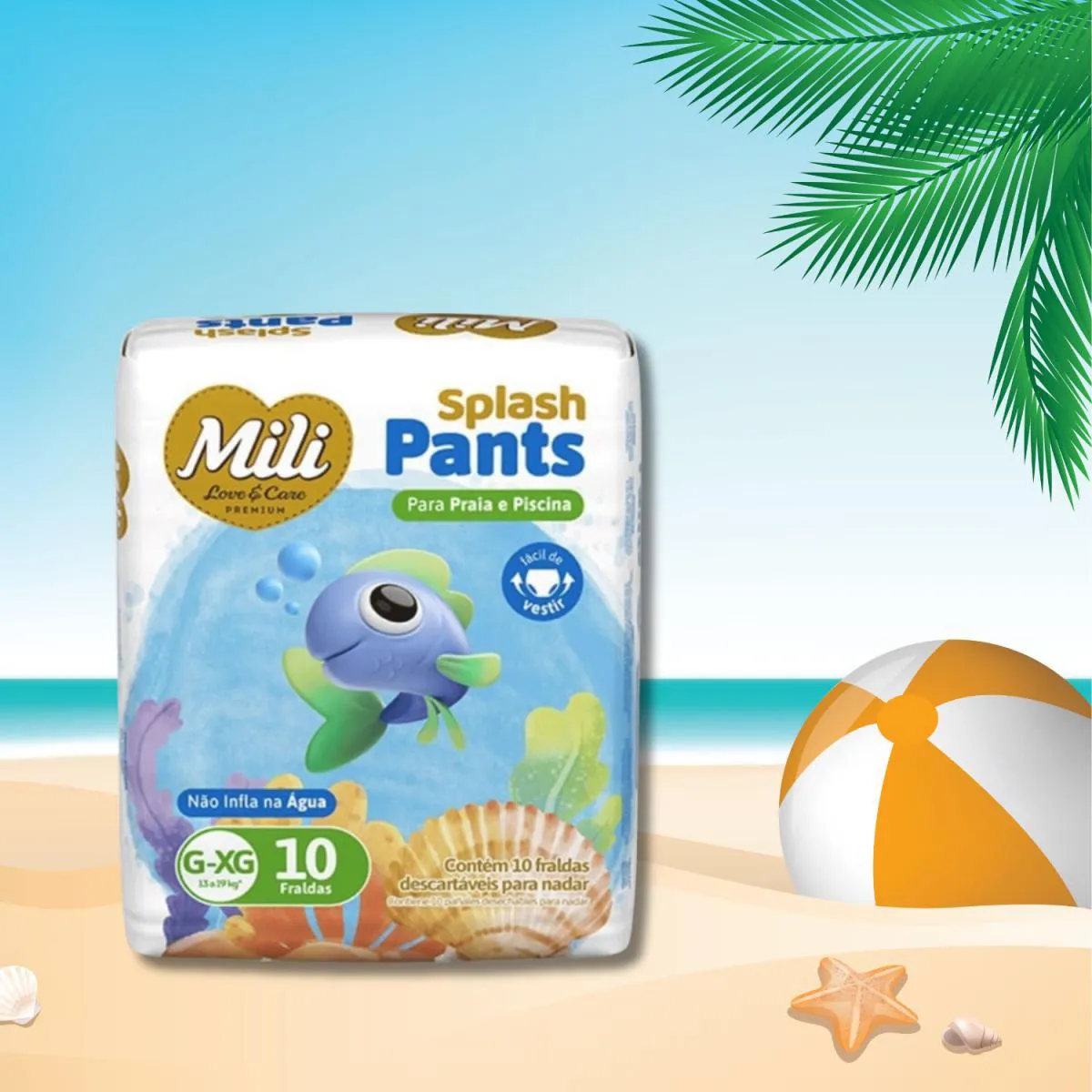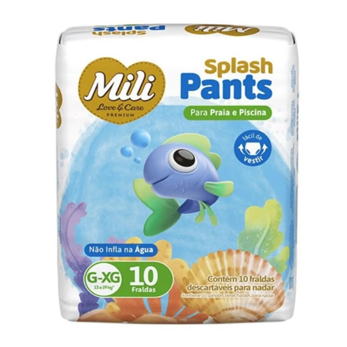 – 1 pacote com 10 unidades de Splash Pants Mili Love Praia & Piscina (tamanho G–XG) Imagens Meramente Ilustrativas. Todas as Informações Divulgadas são de Responsabilidade Exclusiva do Fabricante/fornecedor.