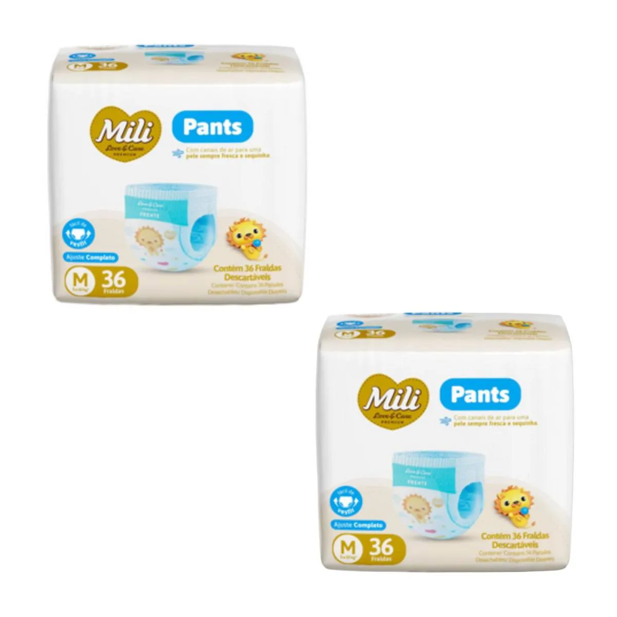 Kit C2 fralda Pants Premium M C36 - Mili Love&Care Fralda Pants Mili Love&Care Premium Conforto e Proteção para o Seu Bebê!