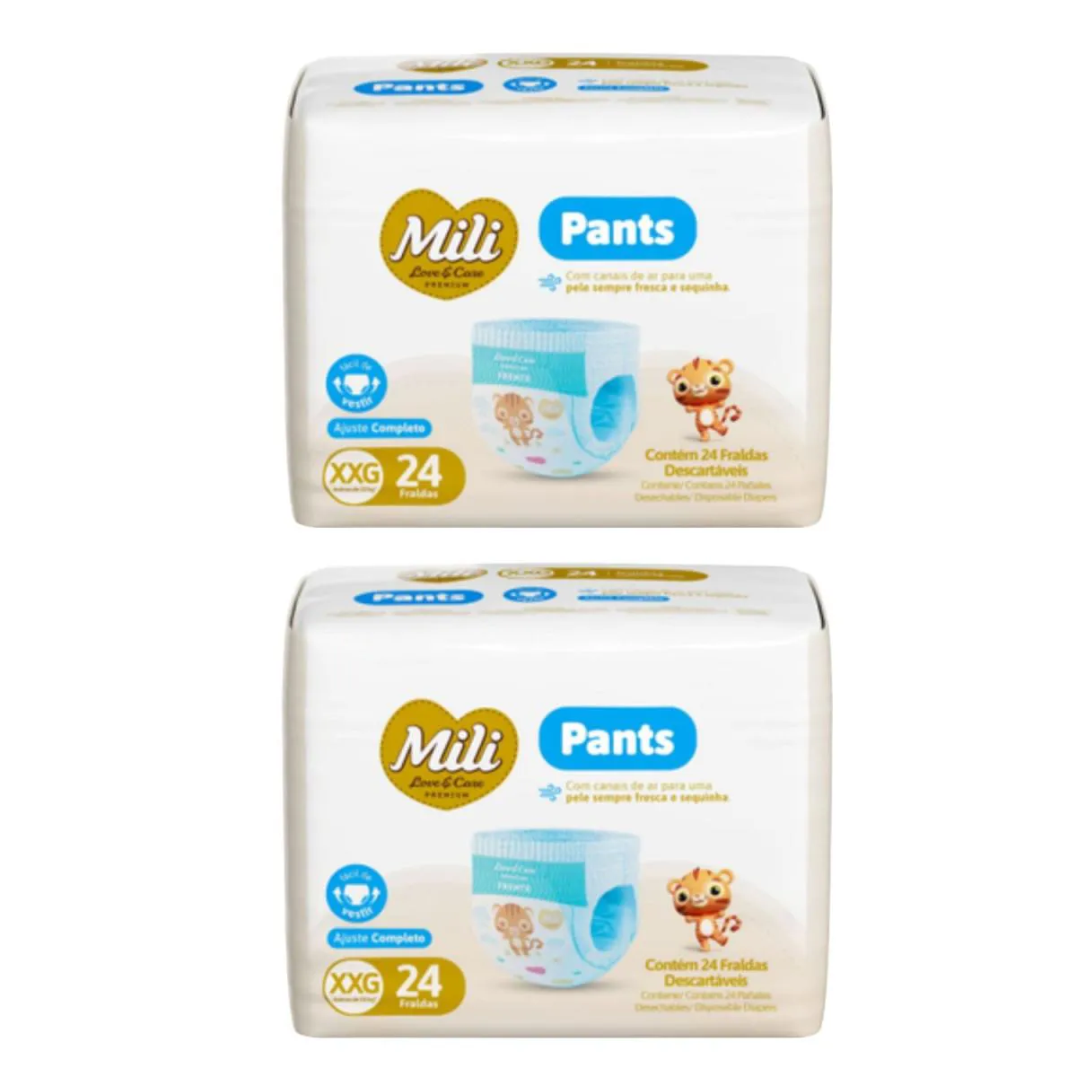 Neste produto está sendo enviado 2 (Duas) unidades da Fralda Pants Premium XXG C24 - Mili Love&CareImagens Meramente Ilustrativas. Todas as Informações Divulgadas são de Responsabilidade Exclusiva do Fabricante/fornecedor.