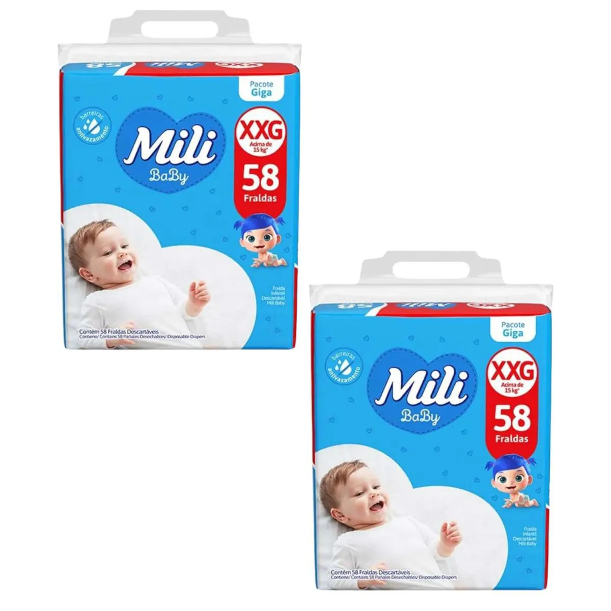 Kit C2 fralda Ultra Seca Giga XXG 58 Unidades - Mili Fralda Mili Ultra Seca Giga XXG - 58 Unidades: Conforto e Proteção para o Seu Bebê!
