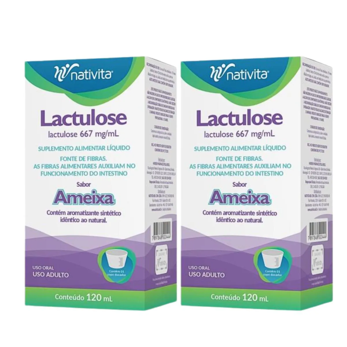 Kit C2 Lactulose 120ml Nativita Sabor Ameixa Neste produto está sendo enviado 2(duas) unidades do Lactulose 120ml cada Nativita Sabor Ameixa Lactulose 120ml Nativita Sabor Ameixa A Lactulose Nativita é um xarope com sabor de ameixa indicado para auxiliar no bom funcionamento intestinal, favorecendo a regularidade e o alívio da prisão de ventre. Sua fórmula atua suavemente, sem causar irritação, sendo ideal para uso diário e com sabor agradável que facilita a administração. Diferenciais: