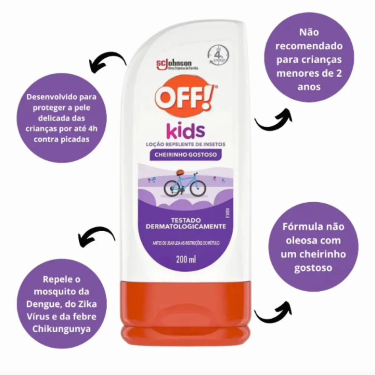 Kit C2 Repelente Off! Kids Loção 200ml – Johnson & Johnson Neste produto está sendo enviado 2(duas) unidades do Repelente Off! Kids Loção 200ml – Johnson & Johnson Repelente Off! Kids Loção 200ml – Johnson & Johnson O Repelente Off! Kids foi desenvolvido especialmente para a pele delicada das crianças, oferecendo proteção eficaz contra mosquitos, inclusive o Aedes aegypti, transmissor da dengue, zika e chikungunya. Sua fórmula suave e dermatologicamente testada protege por até 2 horas, com fragrância leve e agradável. Ideal para uso diário em atividades ao ar livre. Diferenciais: