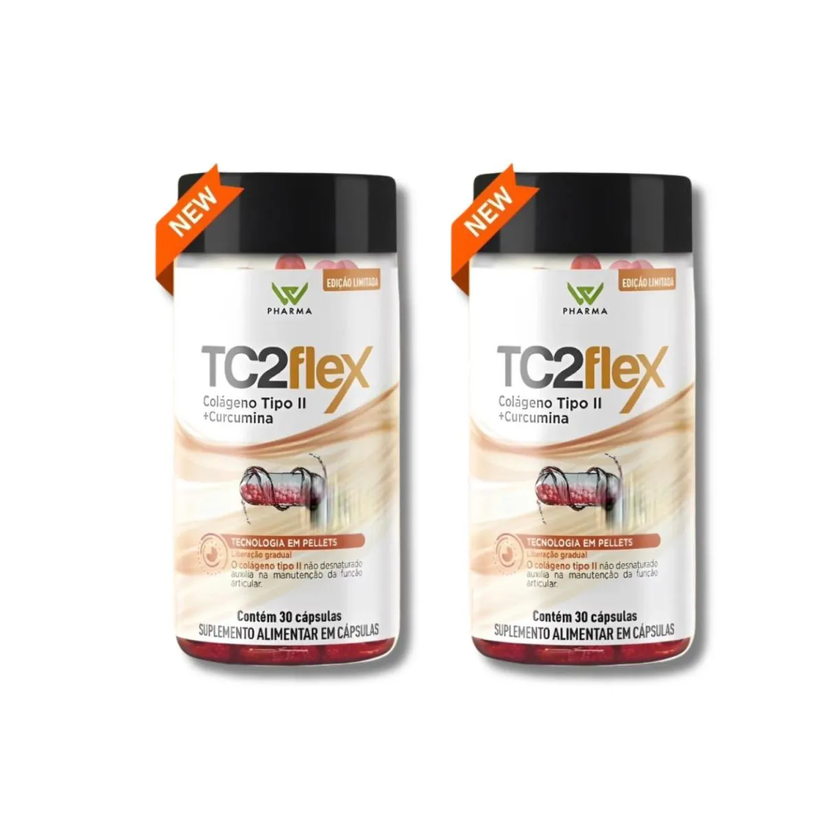Fortaleça suas articulações com TC2 Flex Prowin. Fórmula com colágeno tipo II não desnaturado (UC-II®), vitaminas e minerais selecionados para auxiliar na manutenção da cartilagem, mobilidade e conforto articular — ideal para quem pratica atividades físicas ou busca bem-estar no dia a dia.