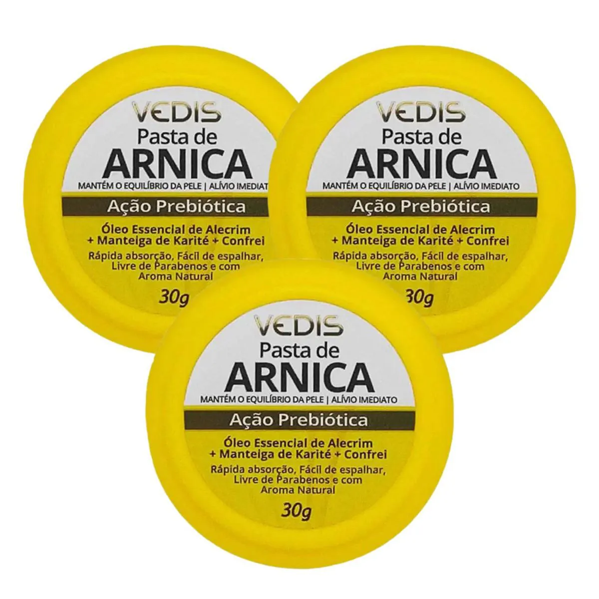 Kit C3 Ação Prebiótica Pasta de Arnica - VedisNeste produto está sendo enviado 3 (três) unidades da Pasta de Arnica com 30g cada.Pasta de Arnica Ação Prebiótica 30g – Vedis
