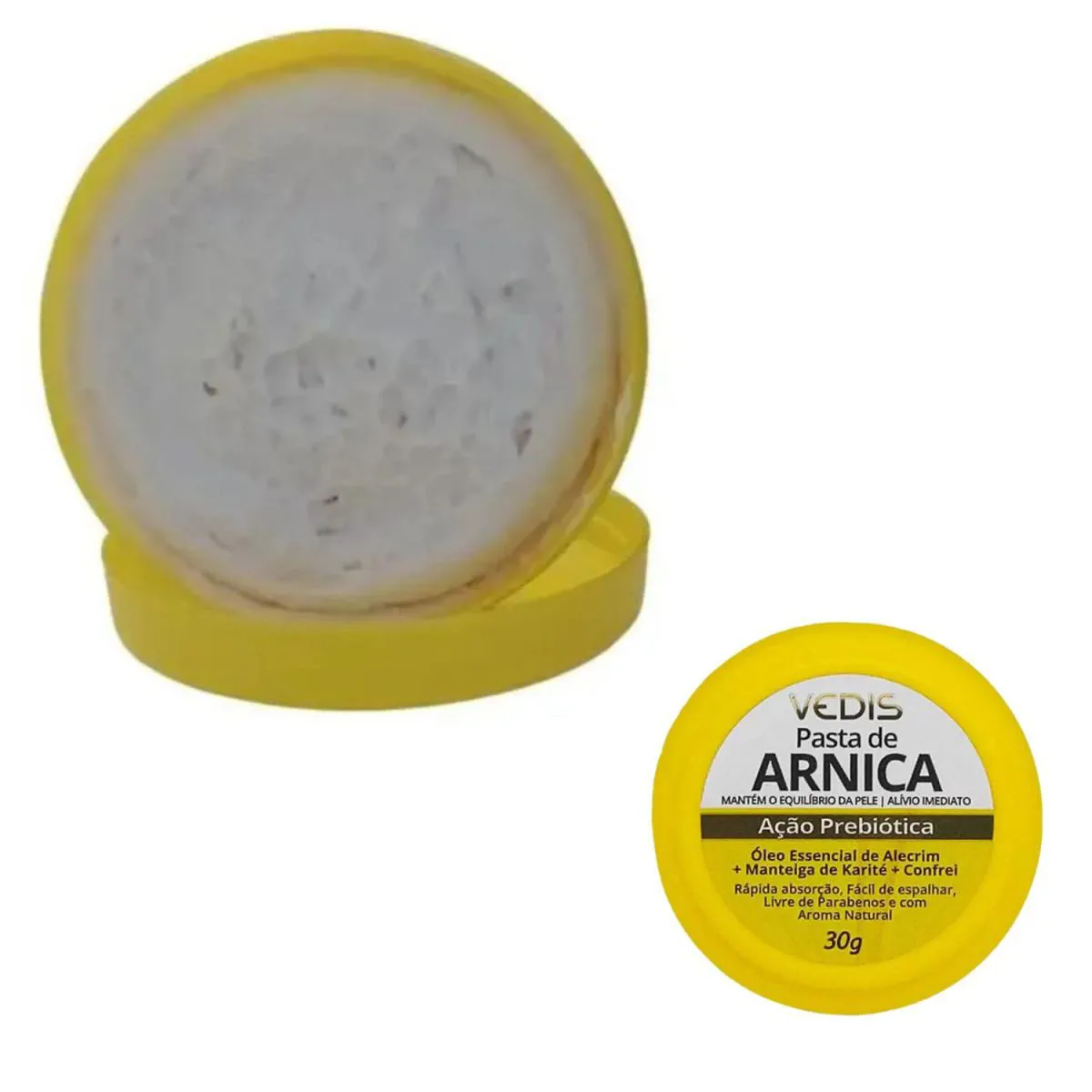 A PASTA DE ARNICA VEDIS com AÇÃO PREBIÓTICA é um produto de ação forte, ótimo para acalmar e aliviar o desconforto causado por hematomas e manter o equilíbrio da microbiota da pele. base enriquecida com componentes naturais, que possuem maior afinidade com sua pele, proporcionando uma hidratação e nutrição profunda. Pele saudável em todas as camadas, fácil de espalhar e rápida absorção. Contém Arnica, Óleo Essencial de Alecrim, Manteiga de Karité, Confrei e Prebióticos.