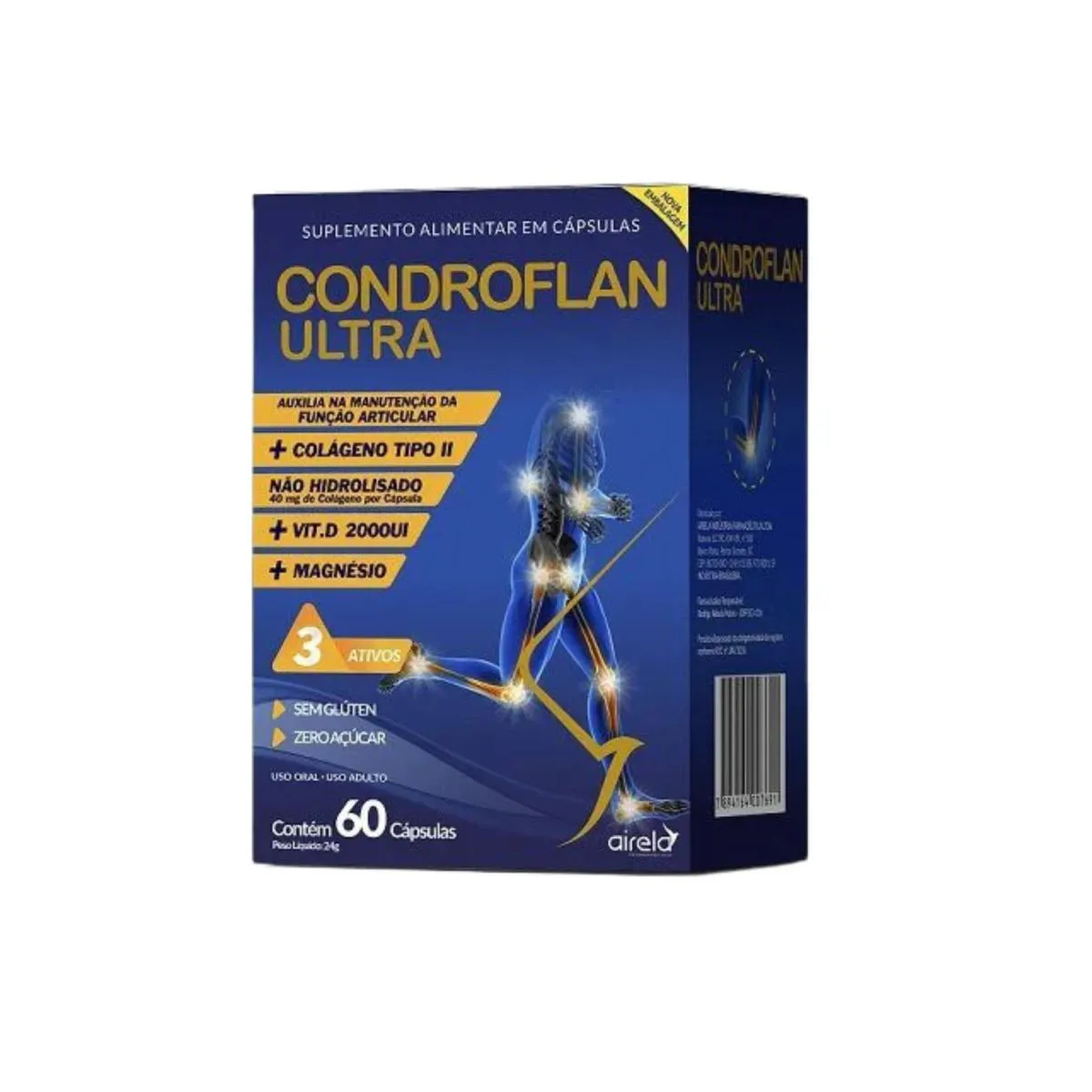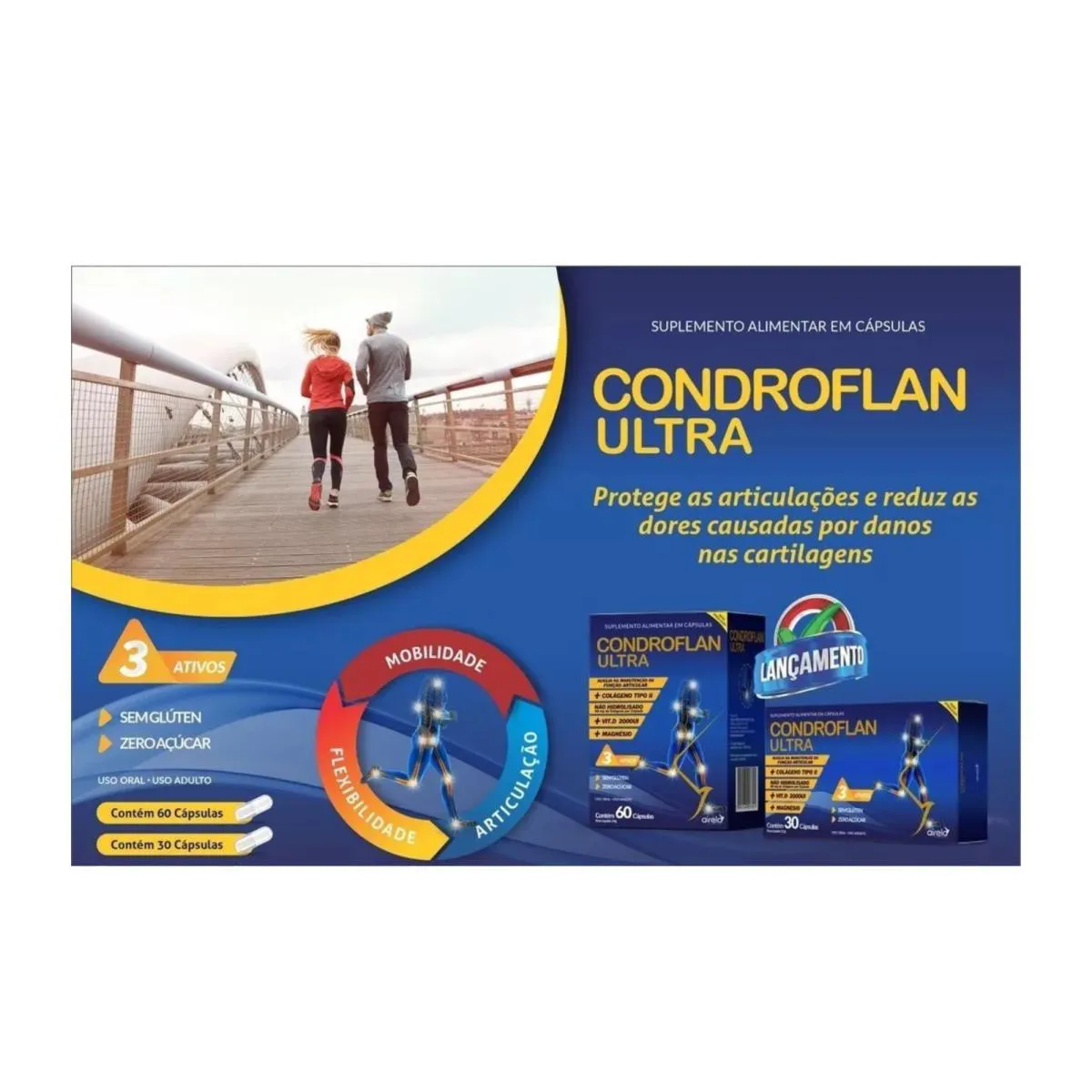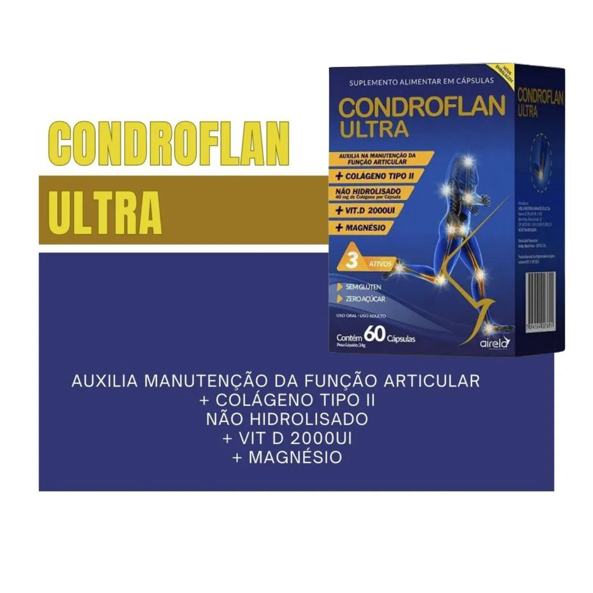 Kit C3 Condroflan Ultra Suplemento - AirelaNeste produto está sendo enviado 3 (três) unidades do Condroflan Ultra com 60 cápsulas cadaCondroflan Ultra Suplemento saúde das Articulações - Airela