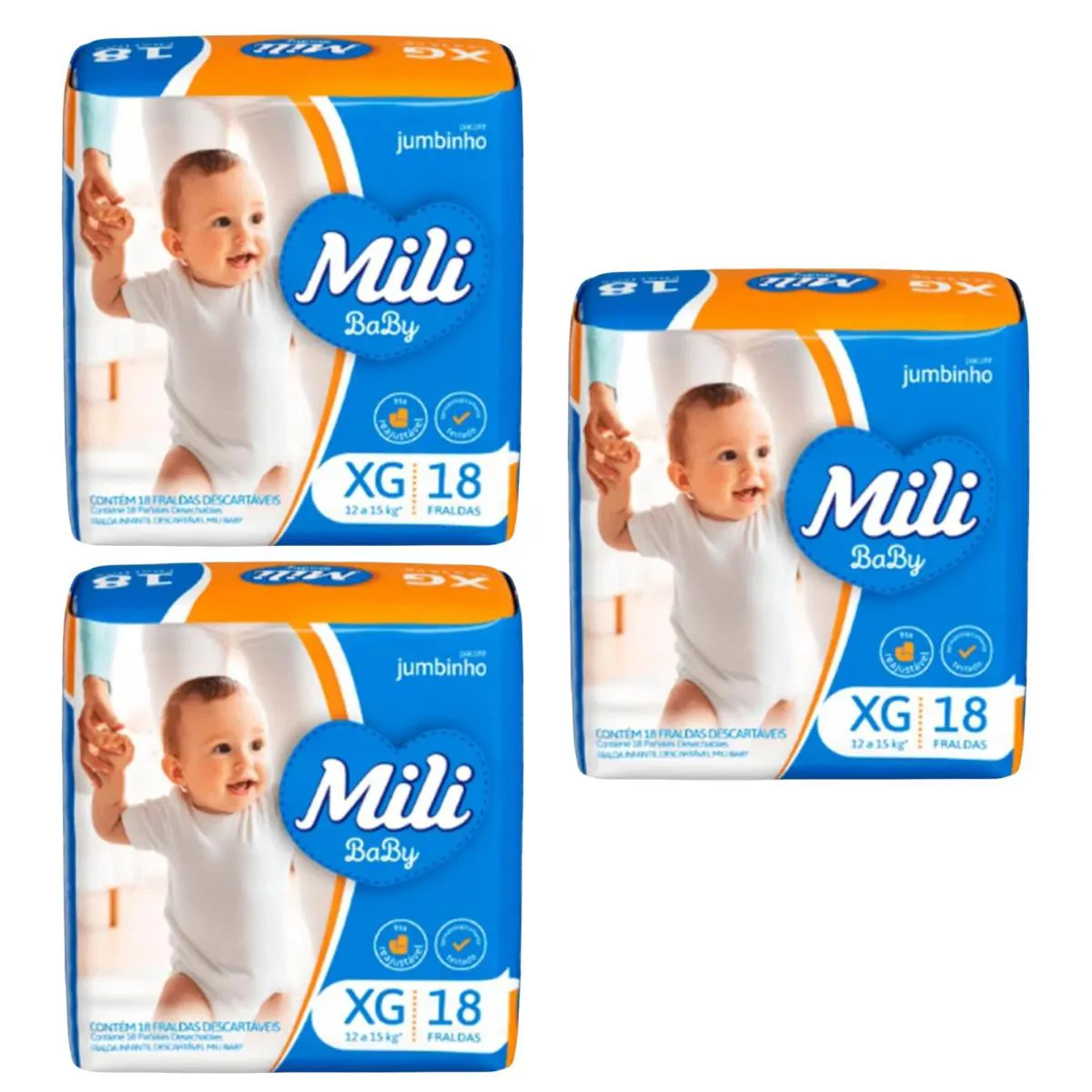 Kit C3 Fralda Descartável Infantil Xg Jumbinho - Mili Baby