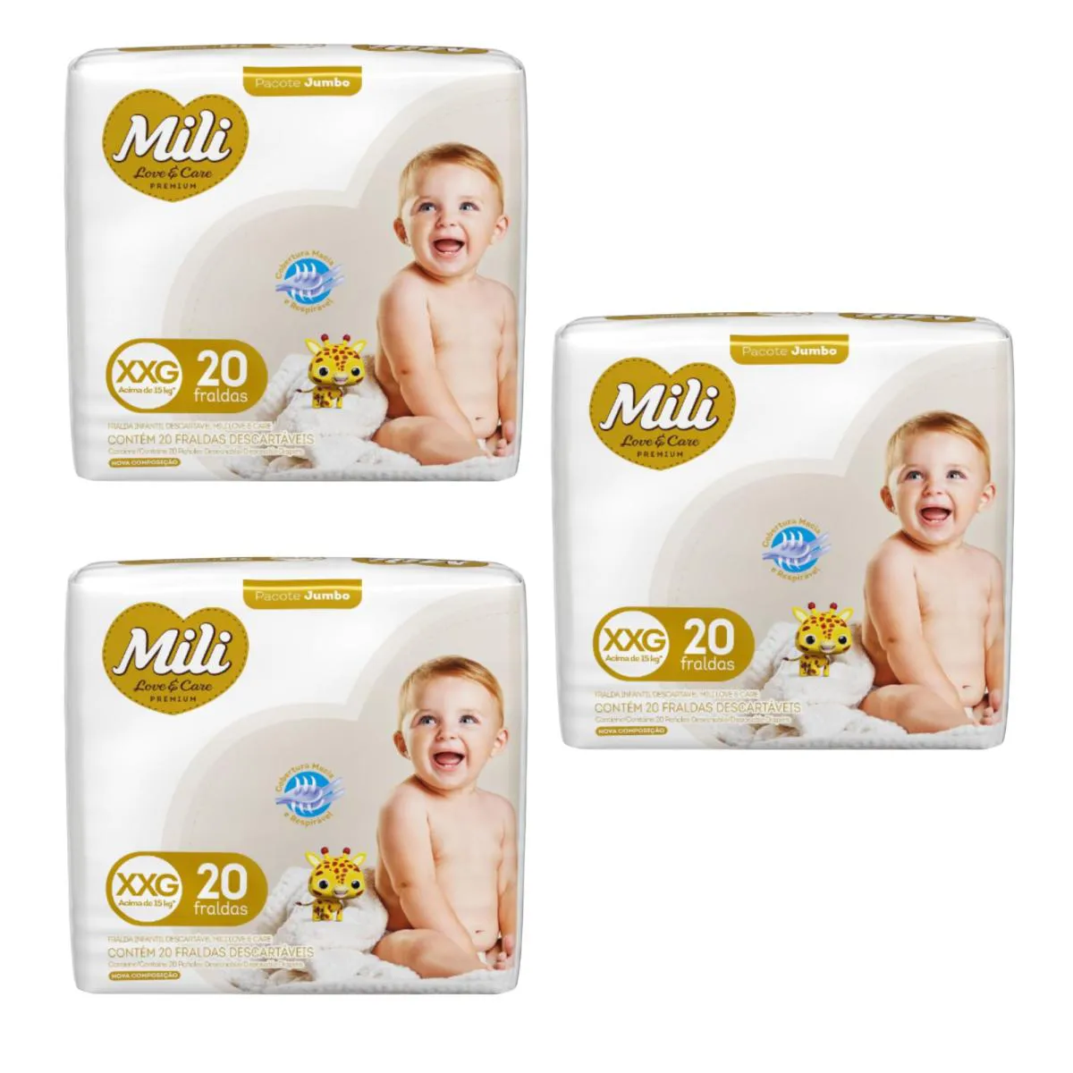 Kit C3 fralda Love & Care Jumbo XXG C/20 - MiliFralda Mili Love & Care Premium: O Cuidado Que Seu Bebê Merece!