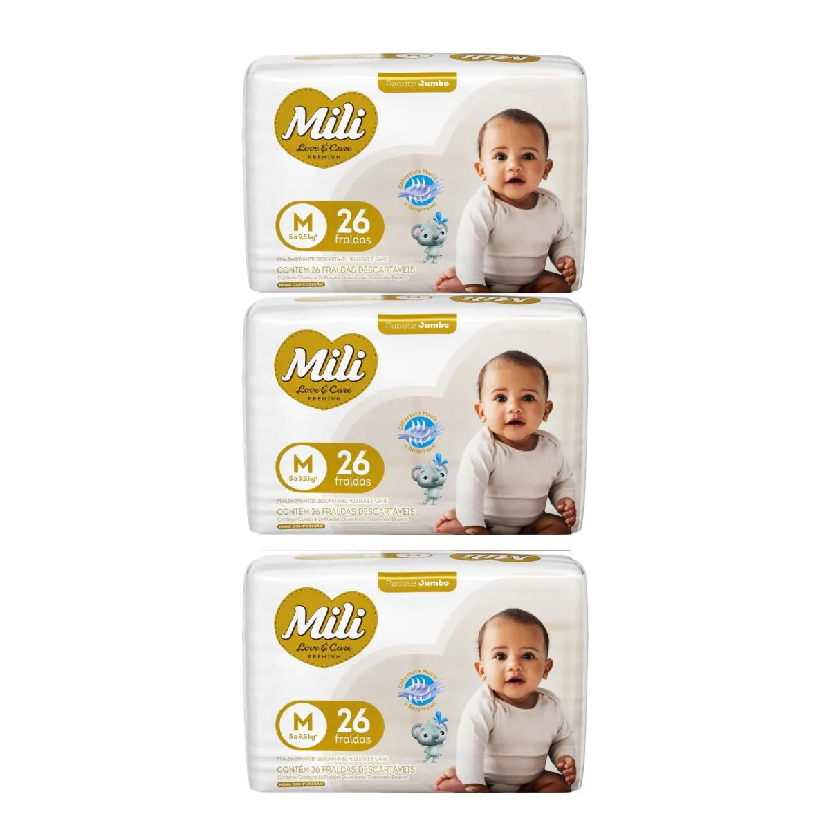 Kit C3 Fralda Mili Love Care Tamanho M Jumbo C/26 - Mili