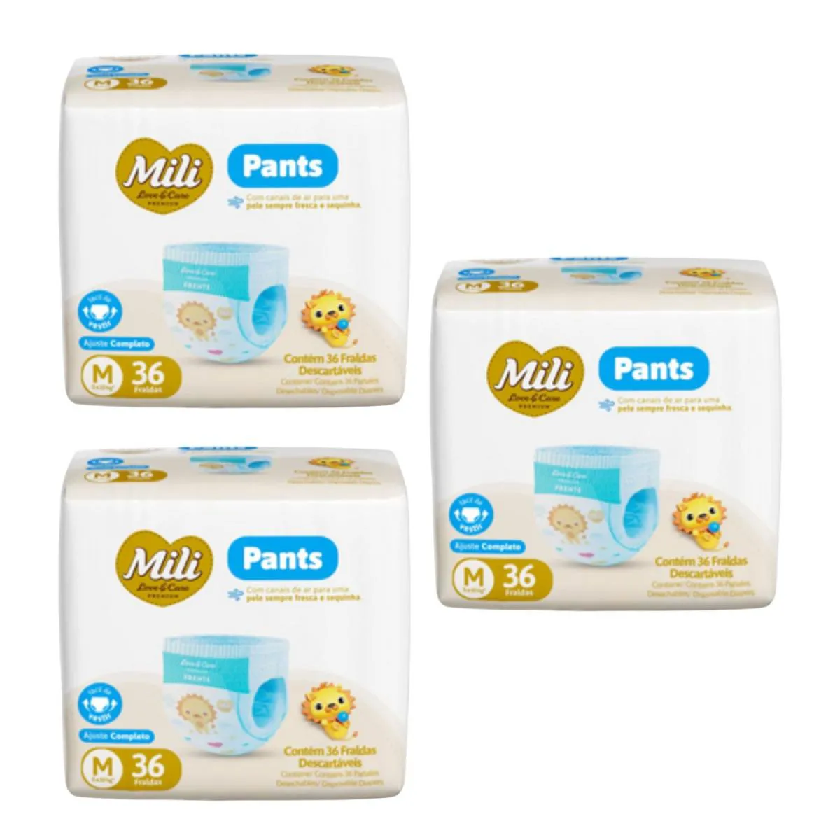 Kit C3 fralda Pants Premium M C36 - Mili Love&Care Fralda Pants Mili Love&Care Premium Conforto e Proteção para o Seu Bebê!