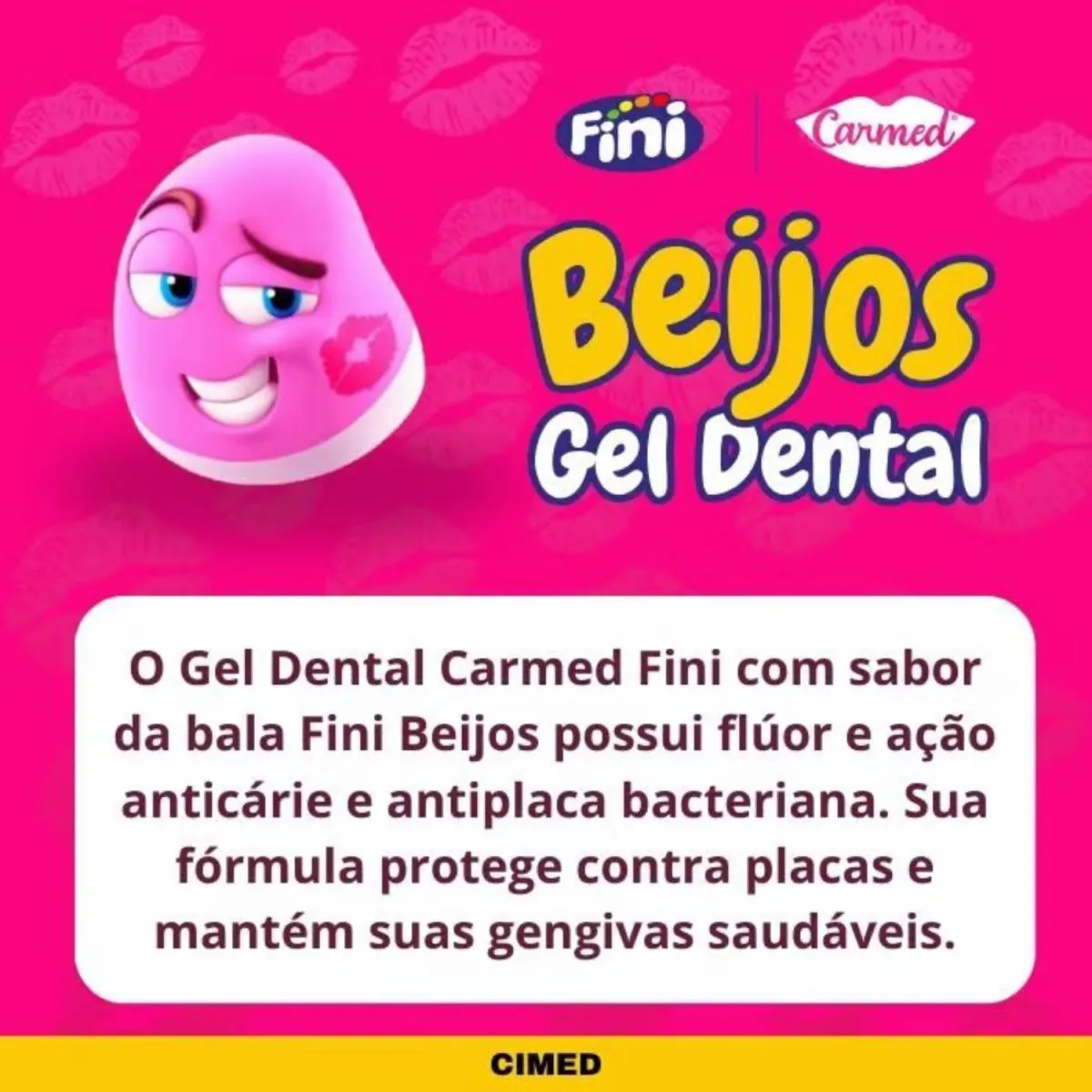 Kit C3 gel dental Beijos Carmed Flúr - CimedNeste produto está sendo enviado 3 (três) unidades do Gel Dental Beijos com 70g cadaGel Dental Carmed Beijos Sabor Morango 70g – Cimed