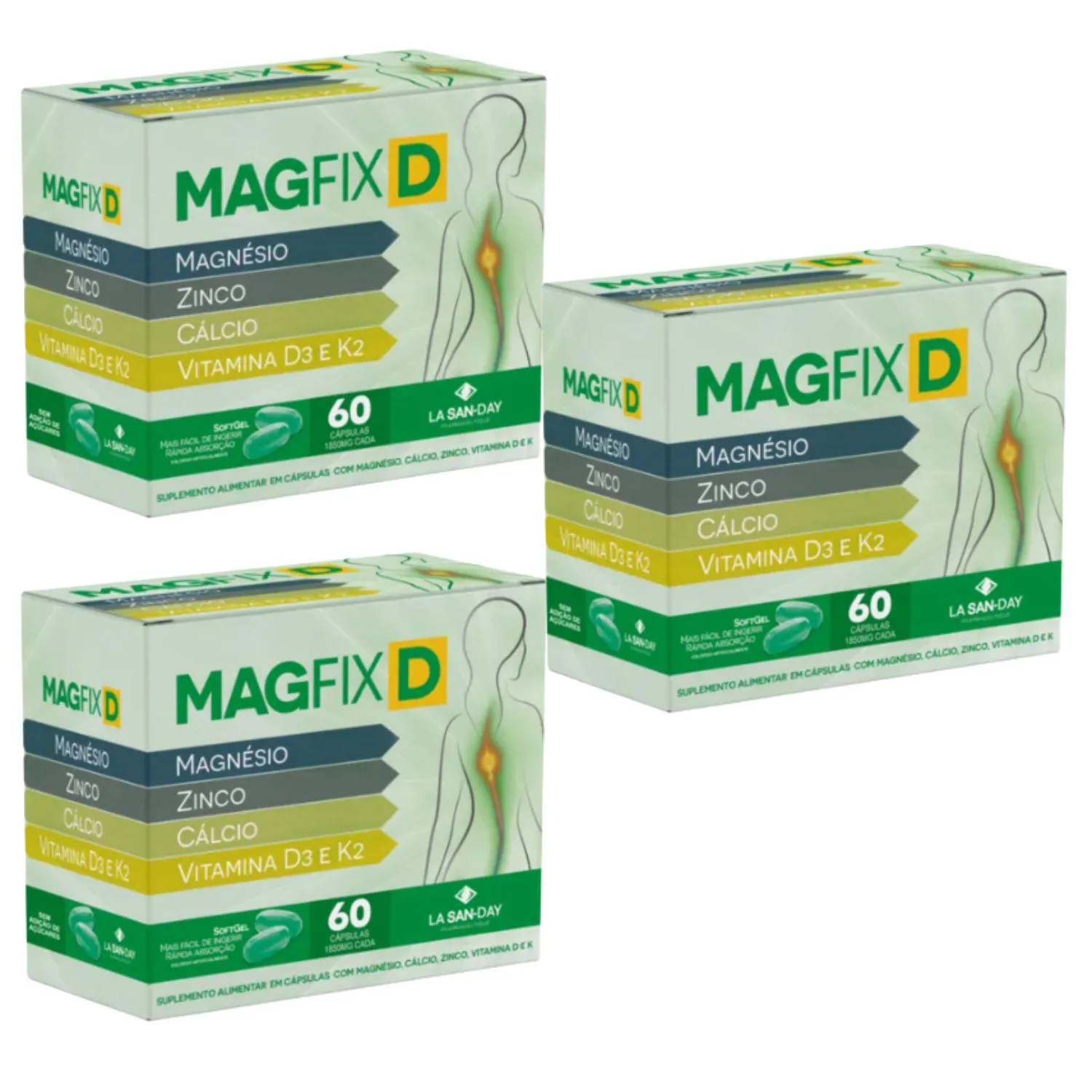 Kit C3 Magfix Suplemento Vitalidade Magnésio - La San DayNeste produto está sendo enviado 3 (três) unidades do Suplemento Magfix, com 60 cápsulas cada.Suplemento Magfix Energia Bem-Estar Diário C60 - La San Day
