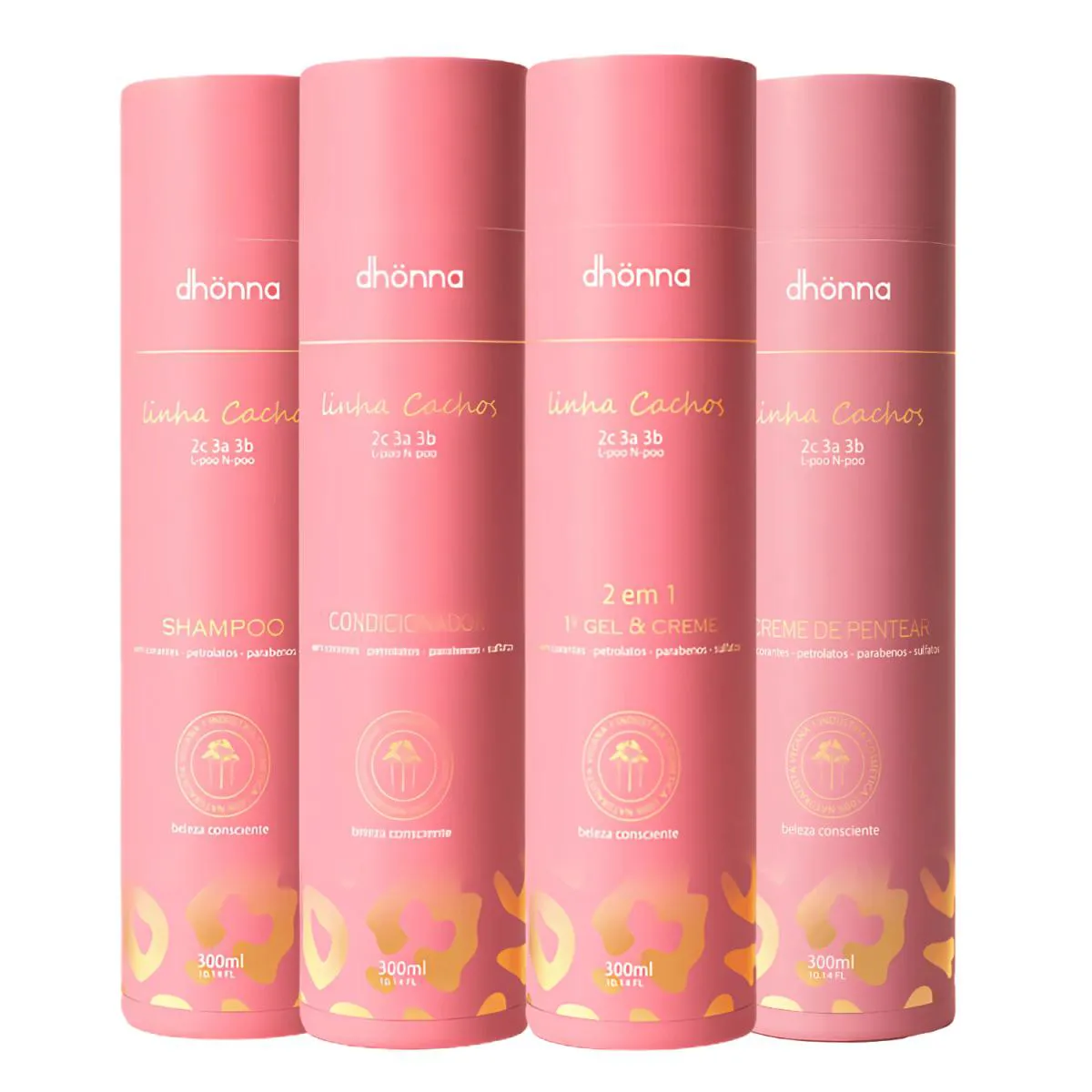 Kit Cachos Shampoo, Condicionador, Creme de Pentear e Gel Creme Dhonna | Limpeza e Definição com Brilho