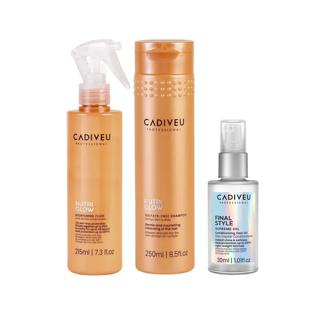 Kit Cadiveu Nutri Glow shampoo 250ml + Fluído Cadiveu Nutri Glow 215ml +Final Style Supreme Oil Óleo Capilar Multibenefícios 30ml