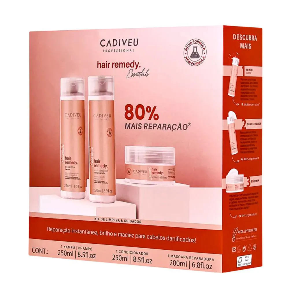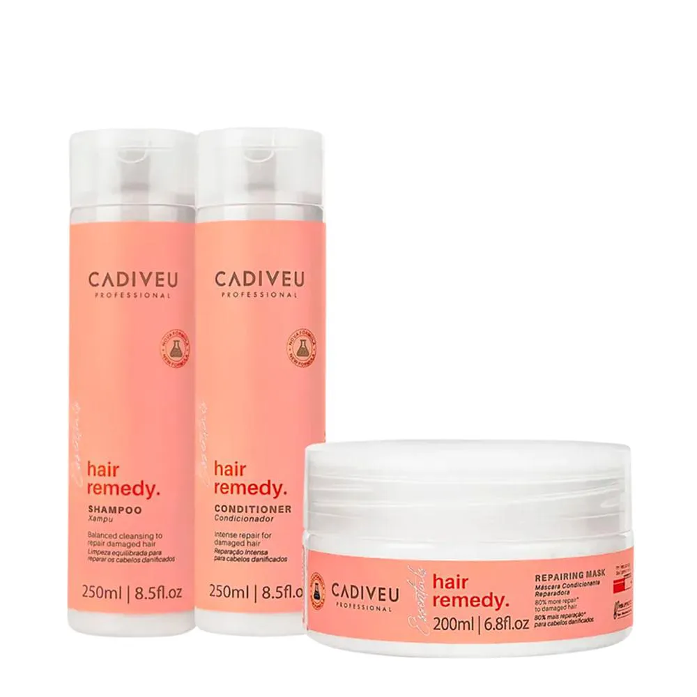 Kit Cadiveu Professionnel Hair Remedy Essentials - Shampoo 250Ml + Condicionador 250Ml + Máscara Reparadora 200Ml