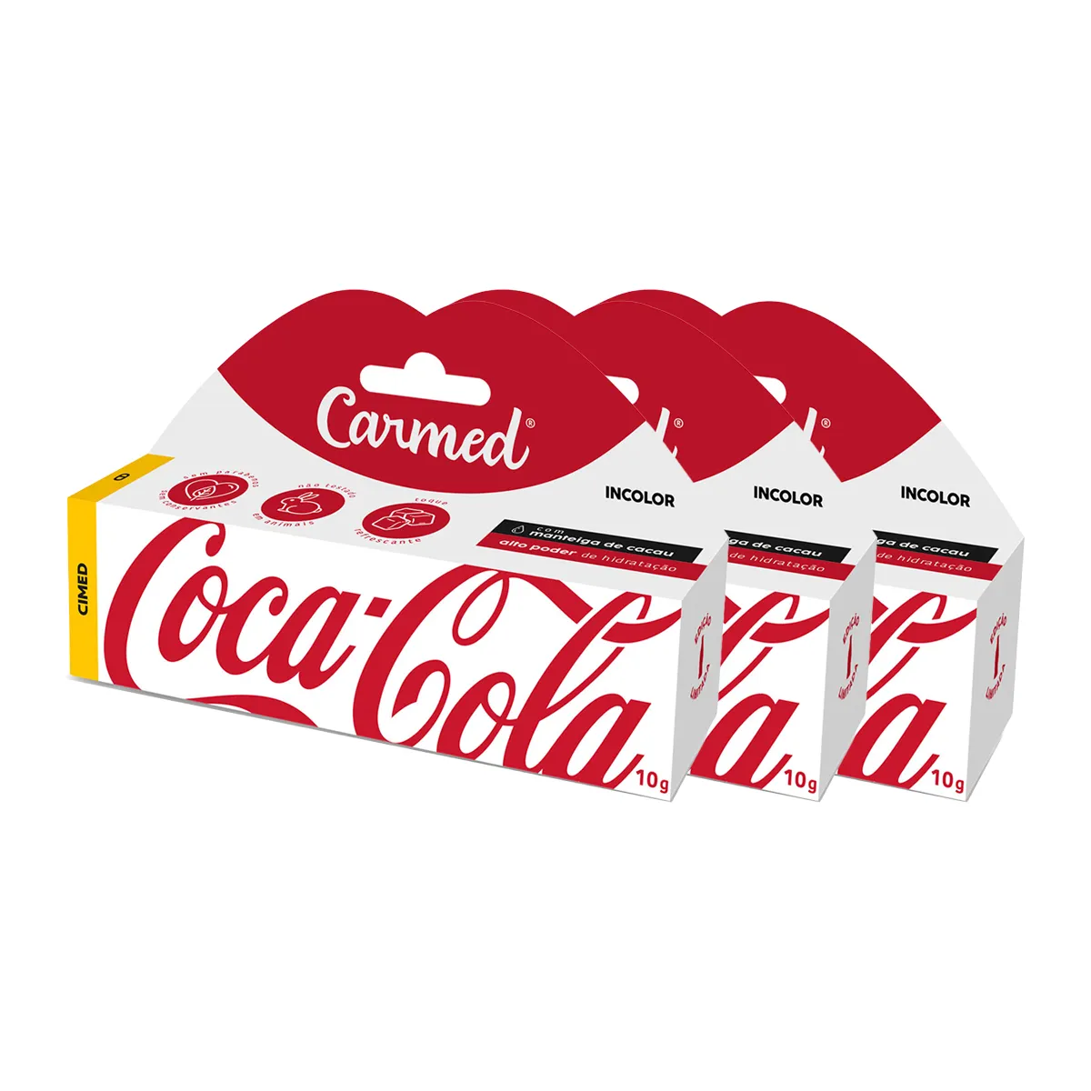 - Edição limitada e colecionável da parceria Carmed exclusiva + Coca-Cola.