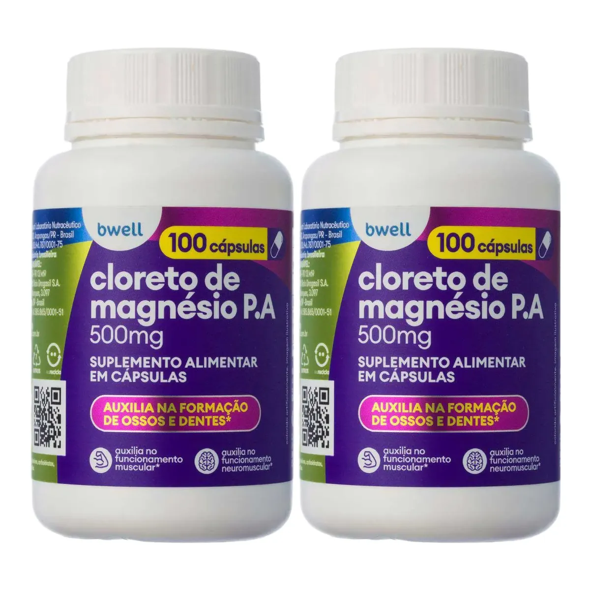Kit Cloreto de Magnésio P.A. 500mg bwell 100 Cápsulas 2 unidades