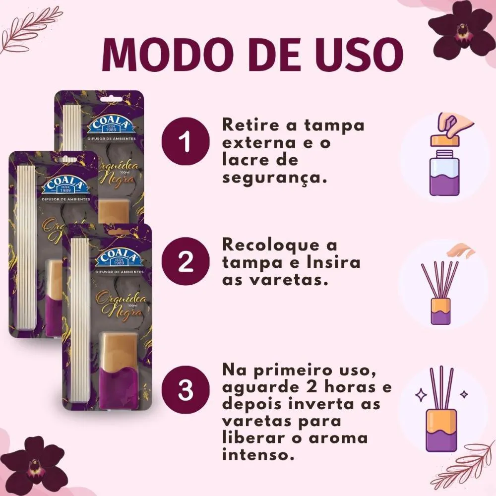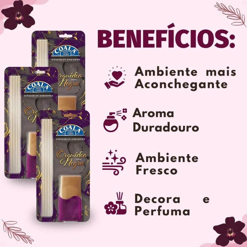 Kit Coala: 3 Difusores De Aroma Orquídea Negra 100ml
