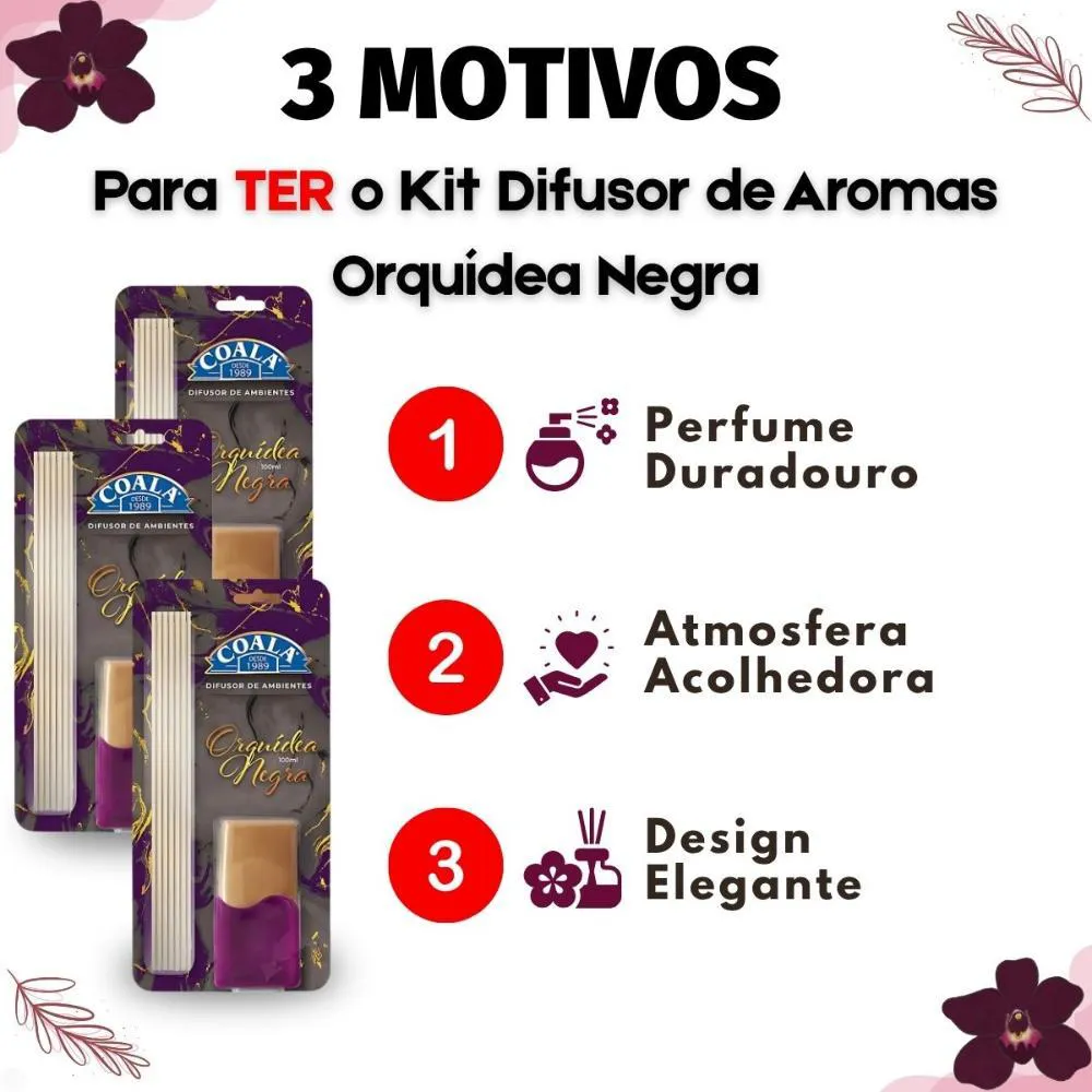 Kit Coala: 3 Difusores de Aroma Orquídea Negra 100ml