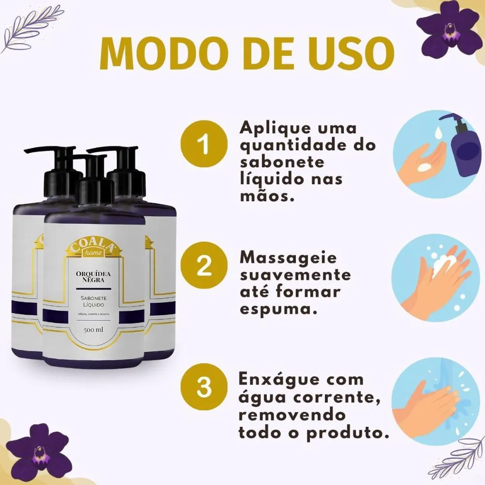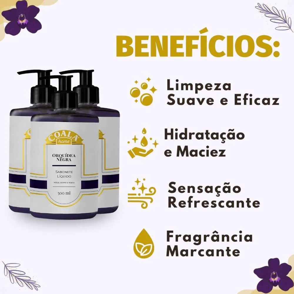 Kit Coala Home: 3 sabonetes Liquidos Orquídea Negra 500ml