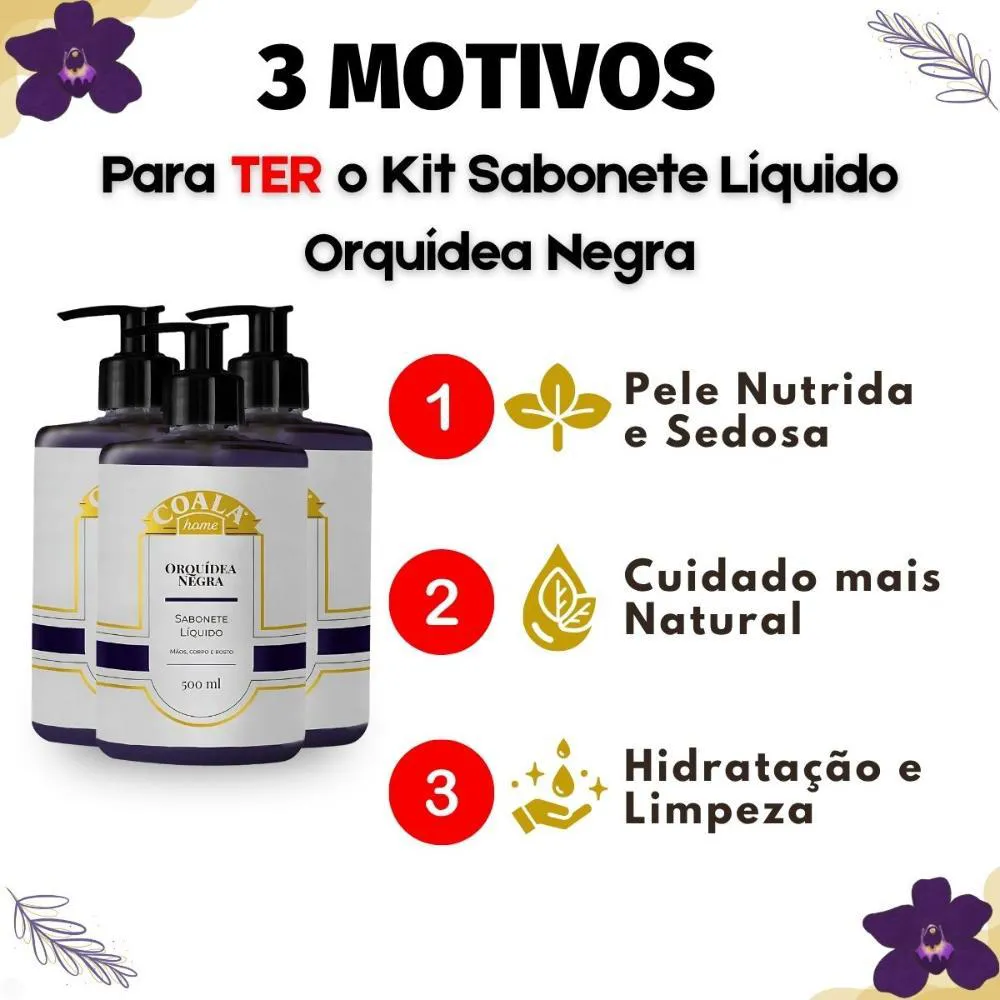 Kit Coala Home: 3 Sabonetes Líquidos Orquídea Negra 500ml