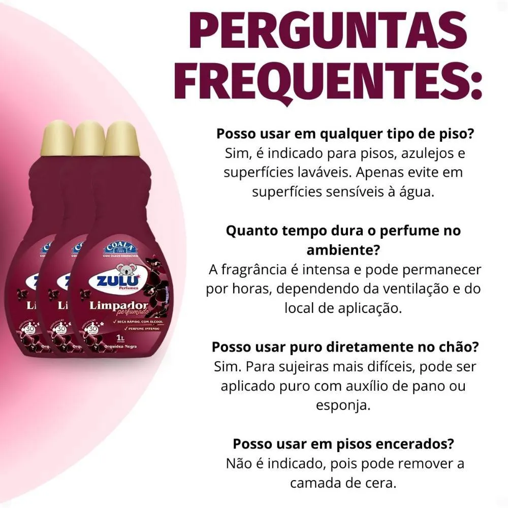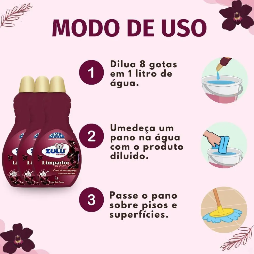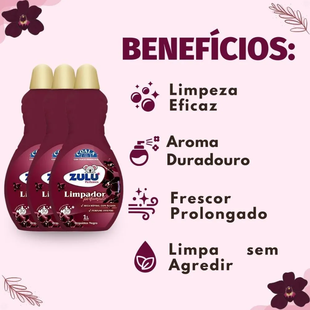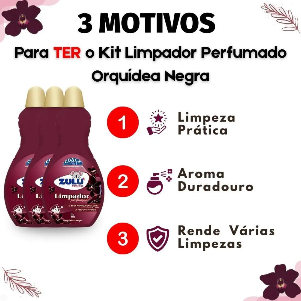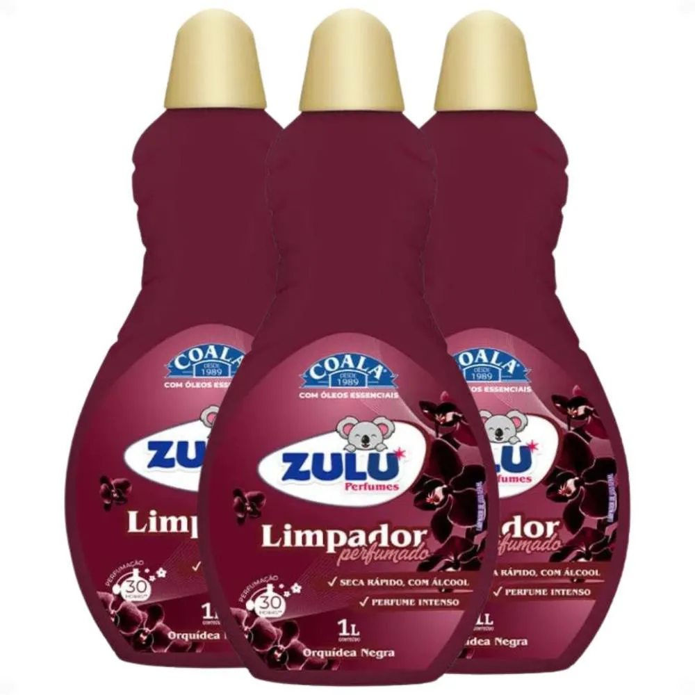 Kit Coala Zulu perfumes: 3 Limpadores Perfumados Orquídea Negra 1L
