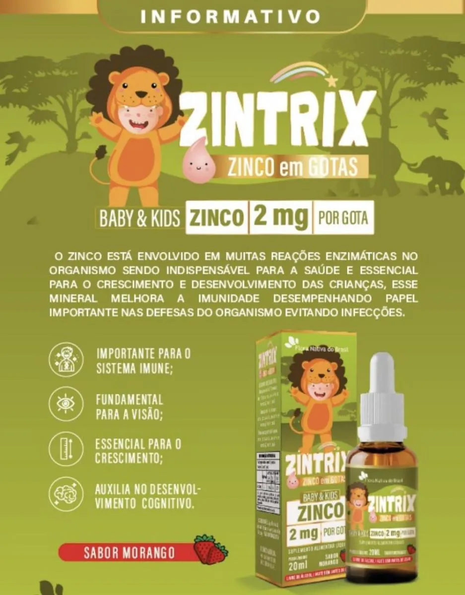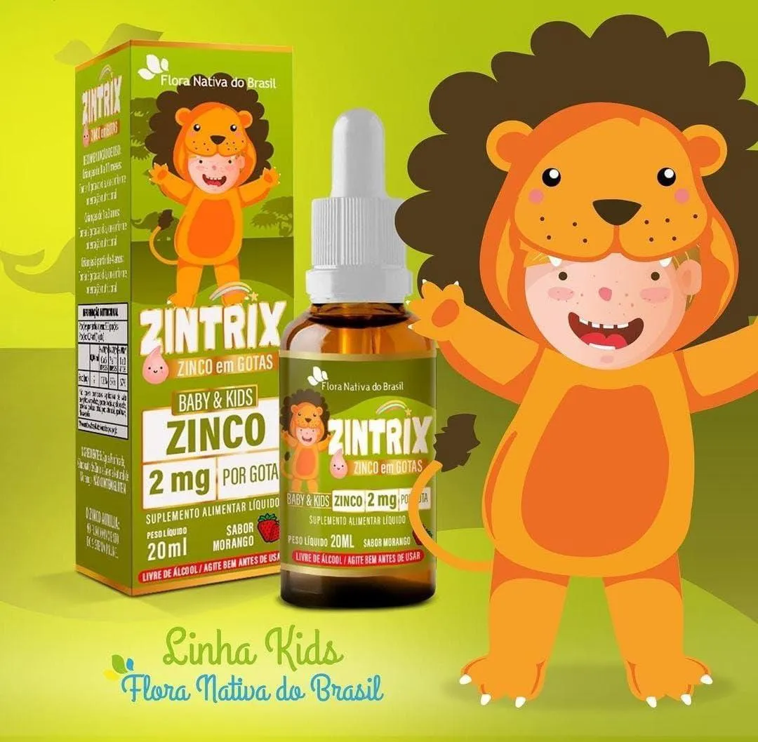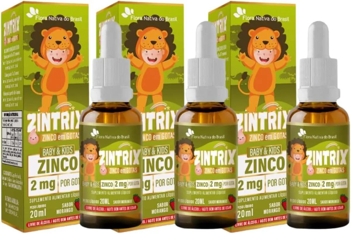 KIT COM 03 - ZINTRIX ZINCO EM GOTAS 20ML SABOR MORANGO KIDS FLORA NATIVA