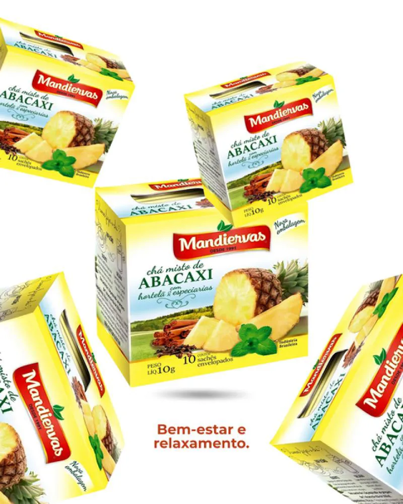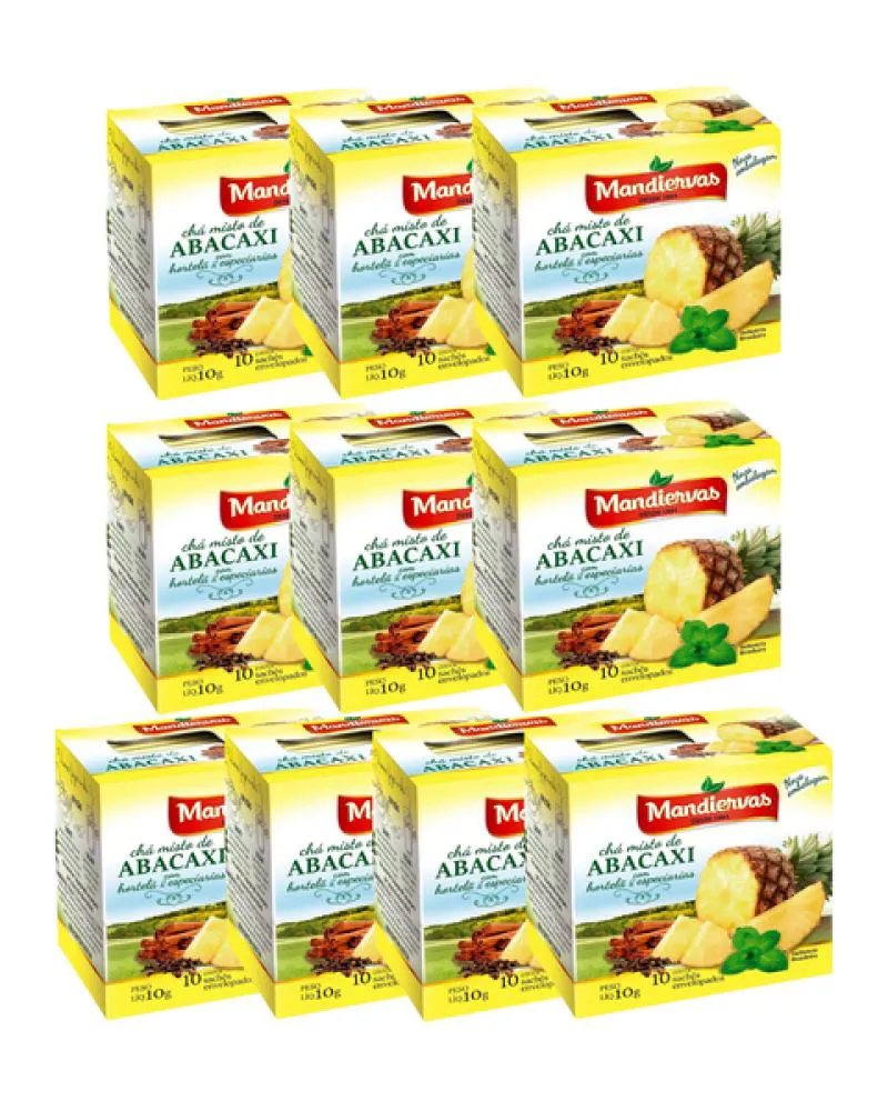 Kit com 10 Caixas de Chá Misto de Abacaxi (100 Sachês Envelopados) 10G Mandiervas
