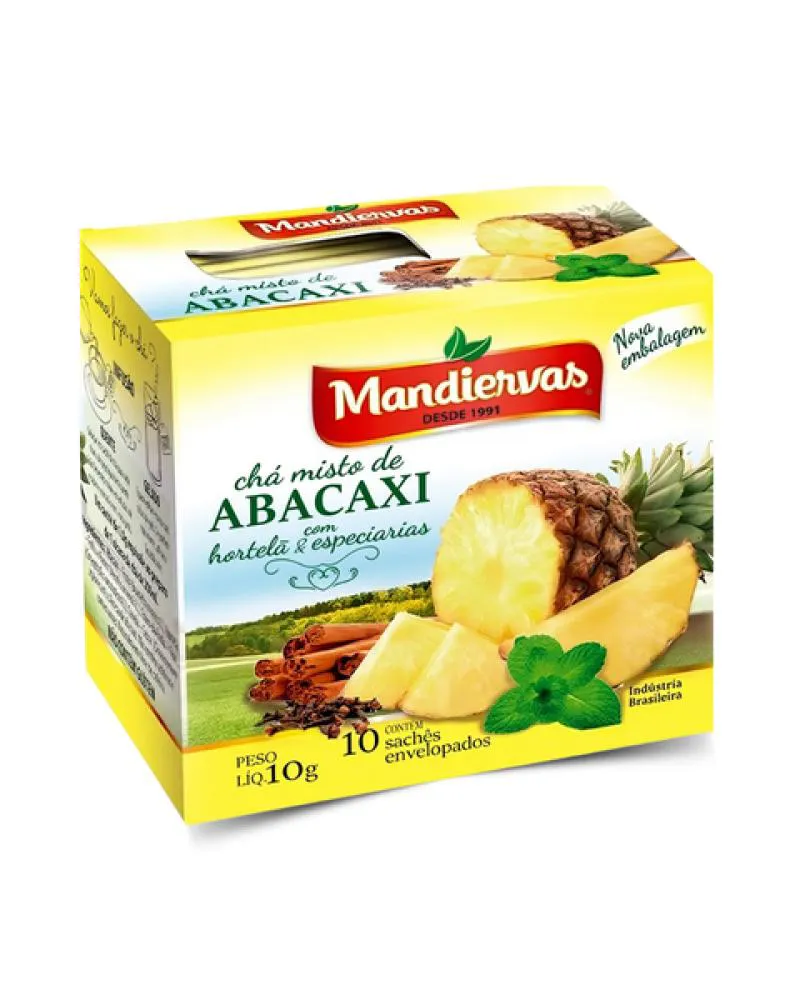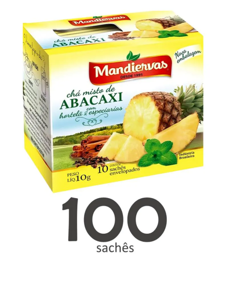 Kit com 10 Caixas de Chá Misto de Abacaxi (100 sachês envelopados) 10g Mandiervas -