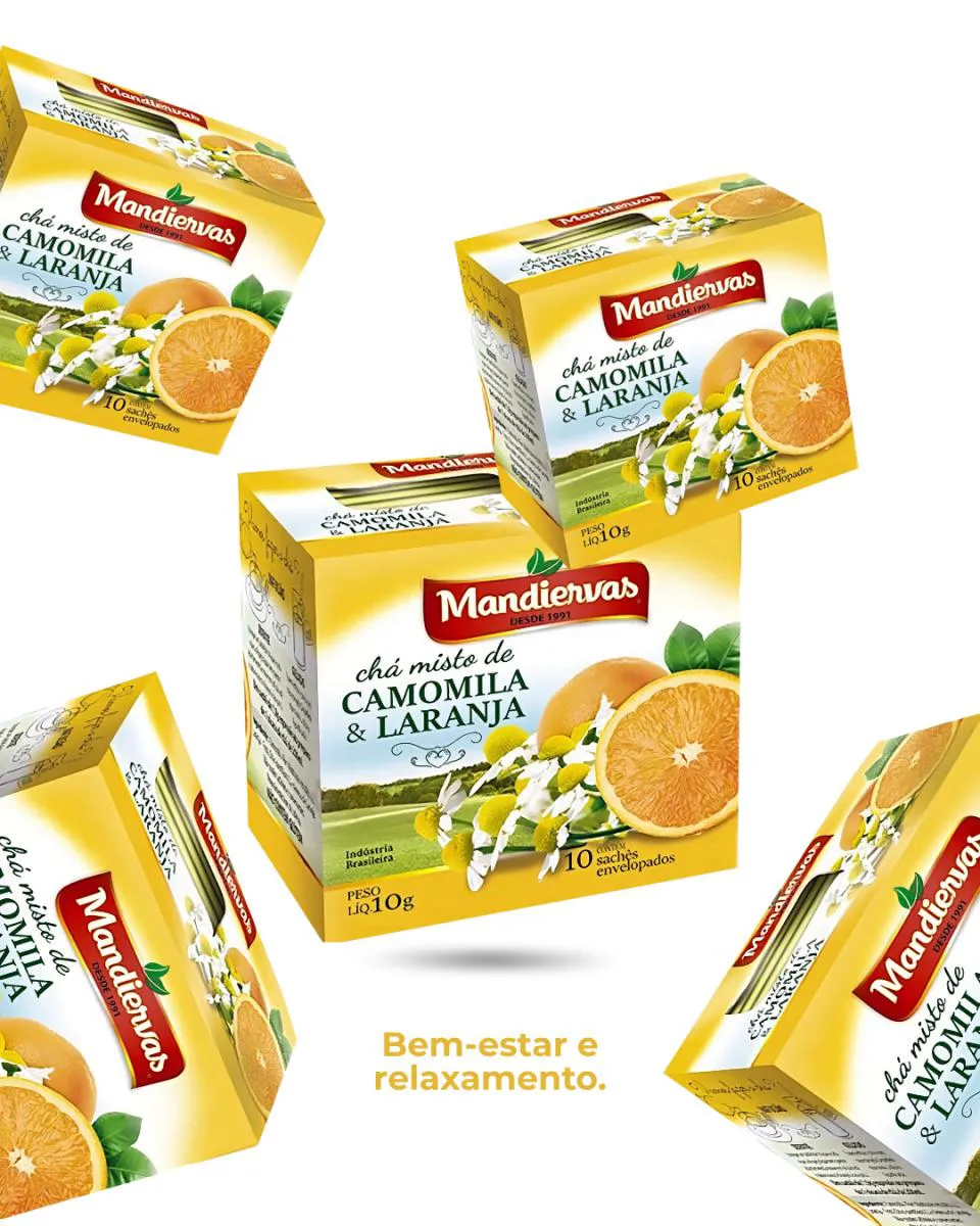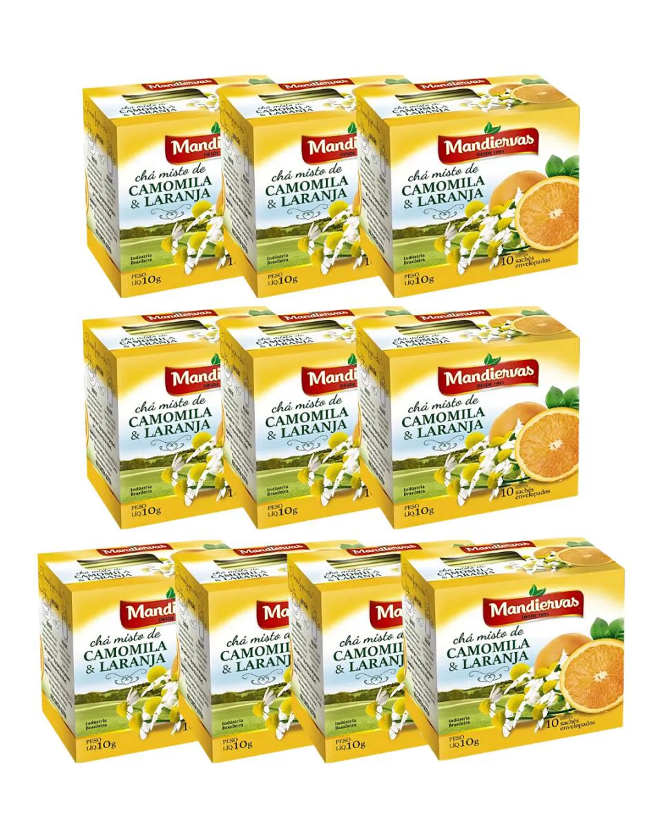 Kit com 10 Caixas de Chá Misto de Camomila e Laranja (100 Sachês Envelopados) 10G Mandiervas