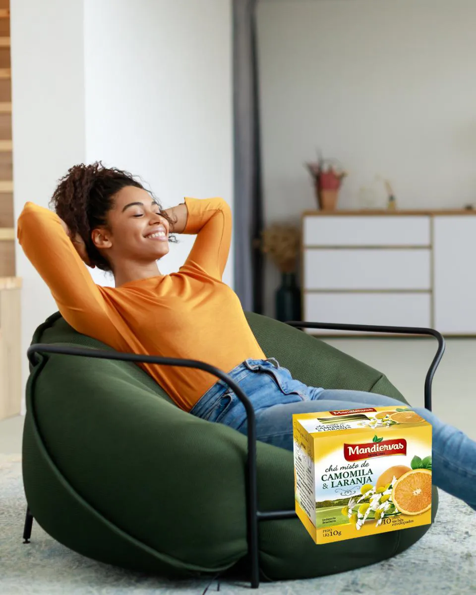 O Chá Misto de Camomila & Laranja Mandiervas combina os efeitos calmantes da camomila com o sabor cítrico e aromático da laranja, servindo principalmente para o bem-estar e relaxamento. Para que Serve o Chá Misto de Camomila & Laranja Este chá é uma infusão que une duas funções principais: relaxamento e um leve impulso de sabor/vitamina. Ele serve para: -Promover o Relaxamento e Bem-Estar: A camomila (Matricaria recutita L.) é uma erva calmante clássica. É indicada para momentos de descanso, ajudando a aliviar o estresse e a ansiedade. -Melhorar a Qualidade do Sono: Devido às suas propriedades relaxantes e sedativas, a camomila melhora o sono. -Auxiliar na digestão Leve: A camomila também possui propriedades digestivas e anti-inflamatórias que podem ajudar a aliviar problemas no estômago, como náuseas e má digestão. Fonte de Sabor e Nutrientes: -A combinação com a laranja (Citrus aurantium L.) torna a bebida mais saborosa e pode adicionar benefícios da vitamina c (dependendo da concentração na infusão).