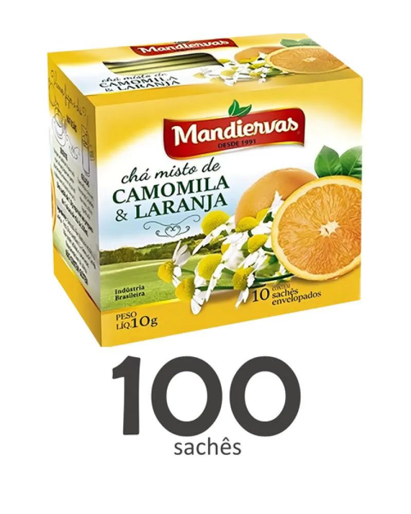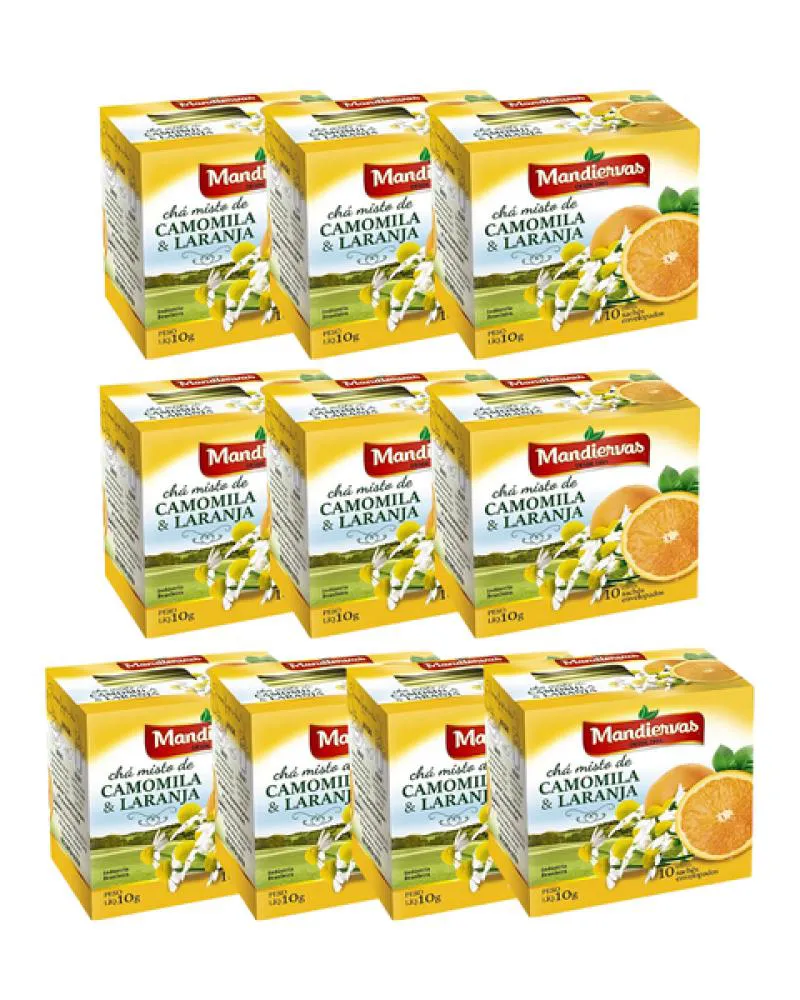 Kit com 10 Caixas de Chá Misto de Camomila e Laranja (100 sachês envelopados) 10g Mandiervas -
