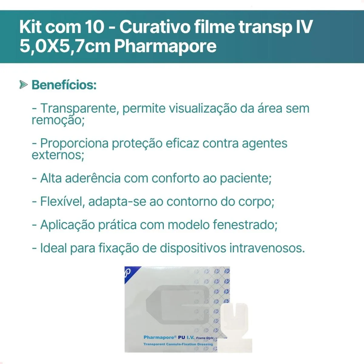 Kit com 10 - Curativo Filme Transp Iv 5,0X5,7Cm Pharmapore