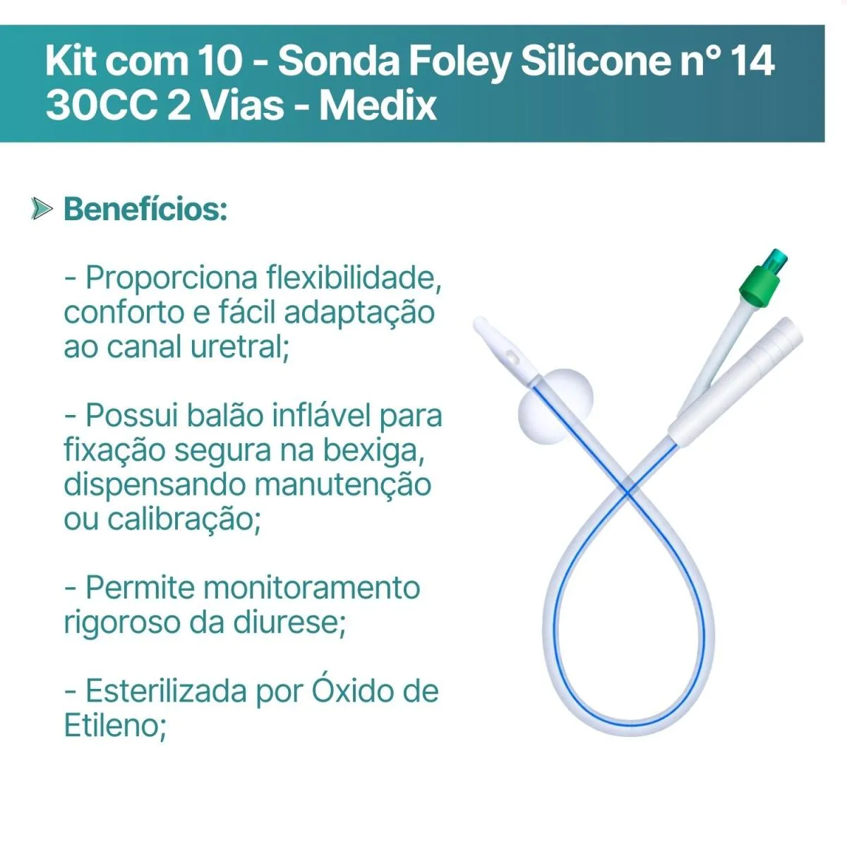 Kit com 10 - Sonda Foley Silicone n° 14 30CC 2 Vias - Medix