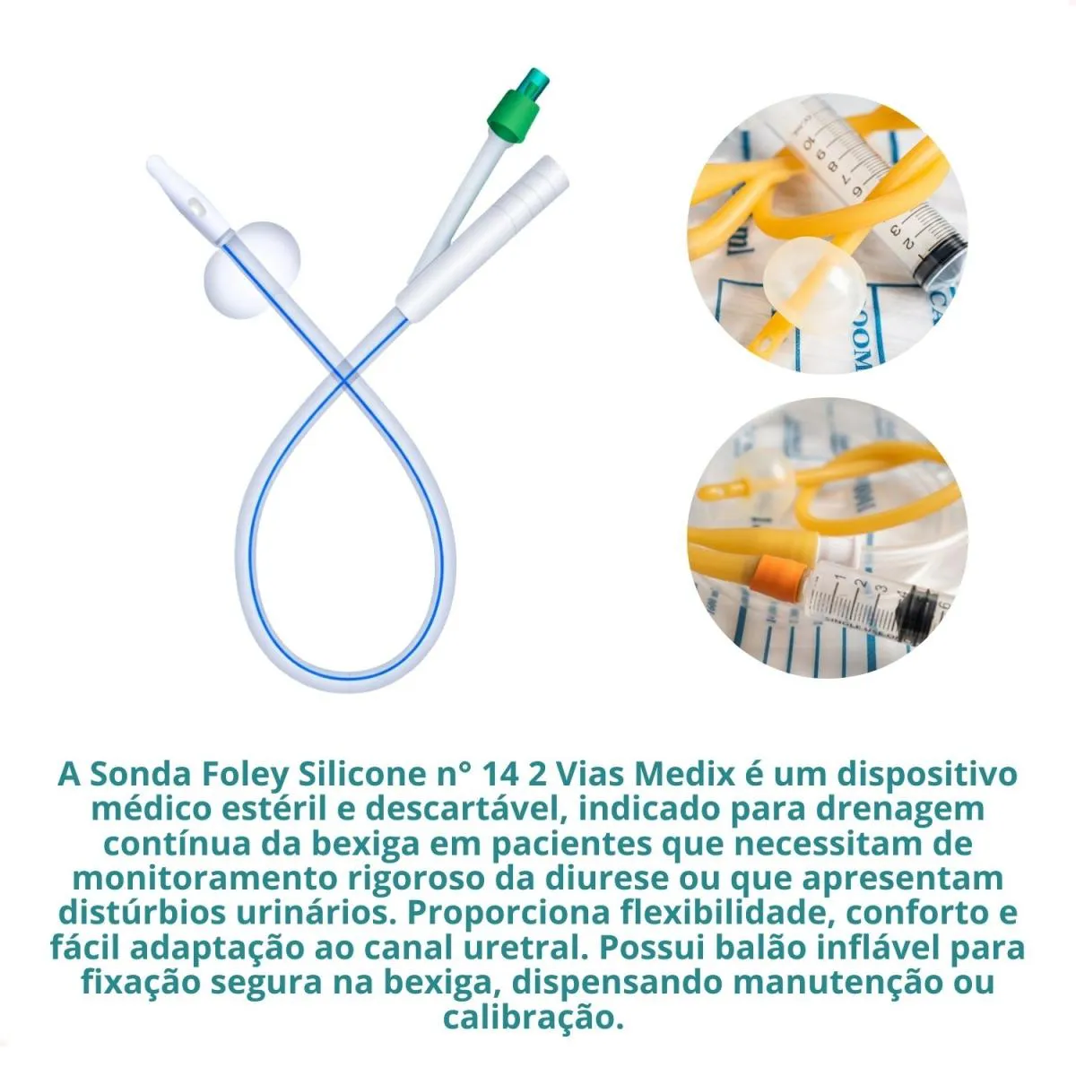 A Sonda Foley Silicone n° 14 2 Vias Medix é um dispositivo médico estéril e descartável, indicado para drenagem contínua da bexiga em pacientes que necessitam de monitoramento rigoroso da diurese ou que apresentam distúrbios urinários. Proporciona flexibilidade, conforto e fácil adaptação ao canal uretral. Possui balão inflável para fixação segura na bexiga, dispensando manutenção ou calibração. Produto esterilizado por Óxido de Etileno, garantindo segurança e minimizando riscos de infecção quando utilizado conforme técnica adequada.