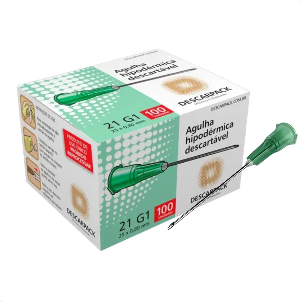 Agulha Hipodérmica Descarpack Descartável 30 x 0,80 21G com 100 Unidade