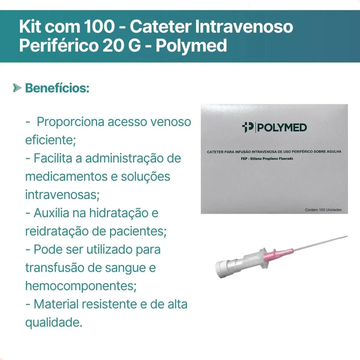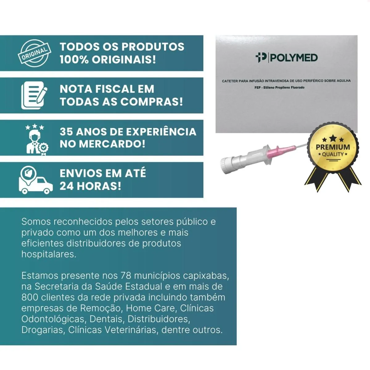 Kit com 100 - Cateter Intravenoso Periférico 20 G - Polymed