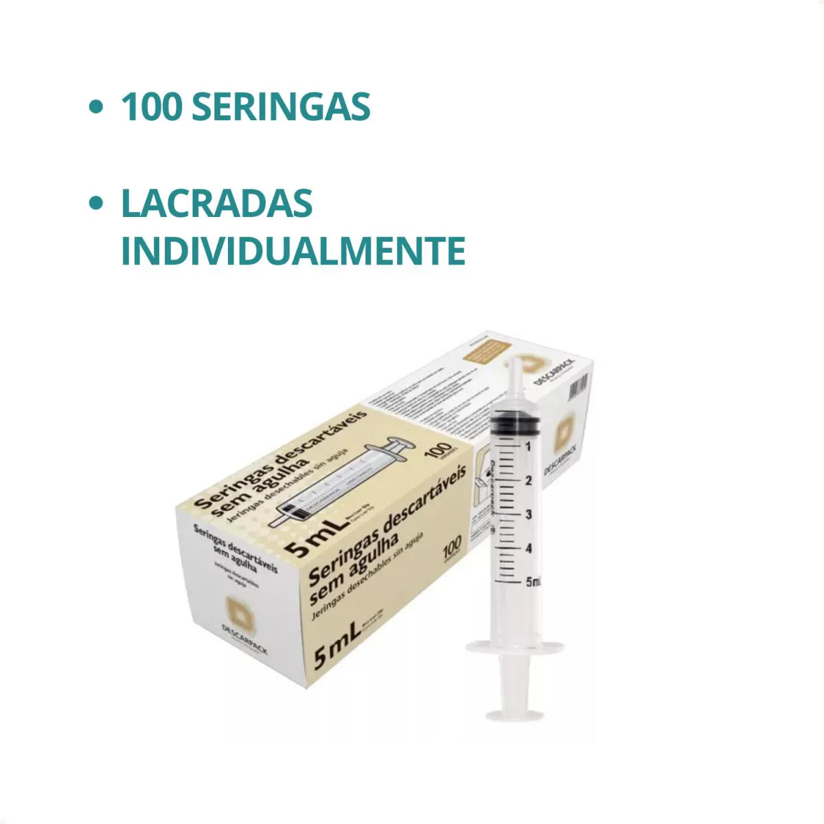 Kit com 100 Seringas 5 ML sem agulha Luer Slip Descarpack