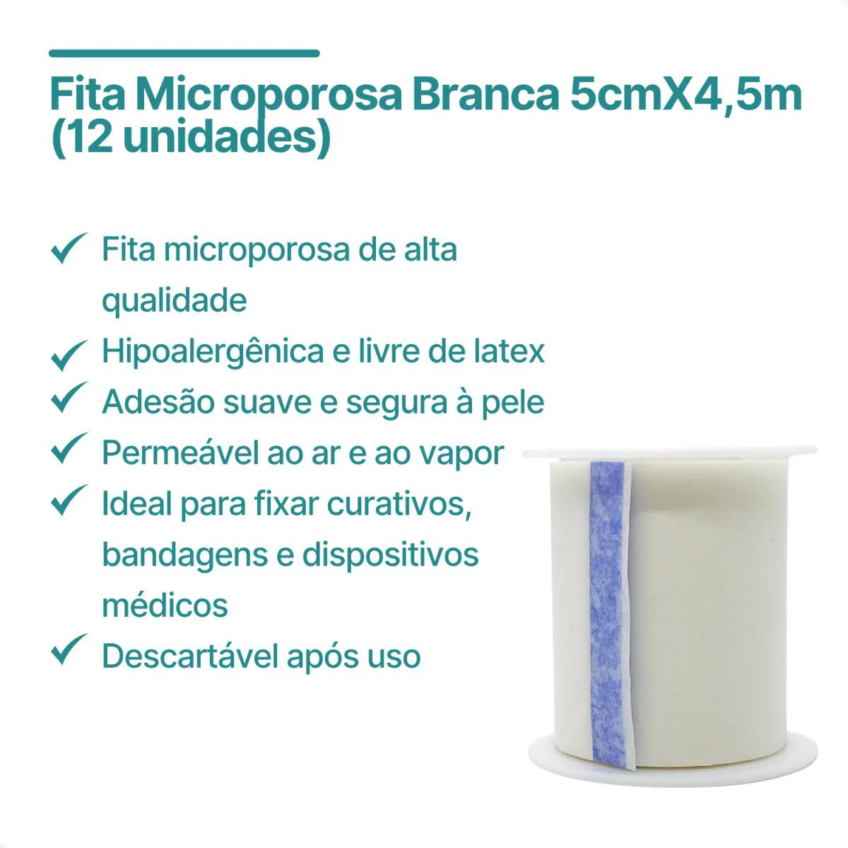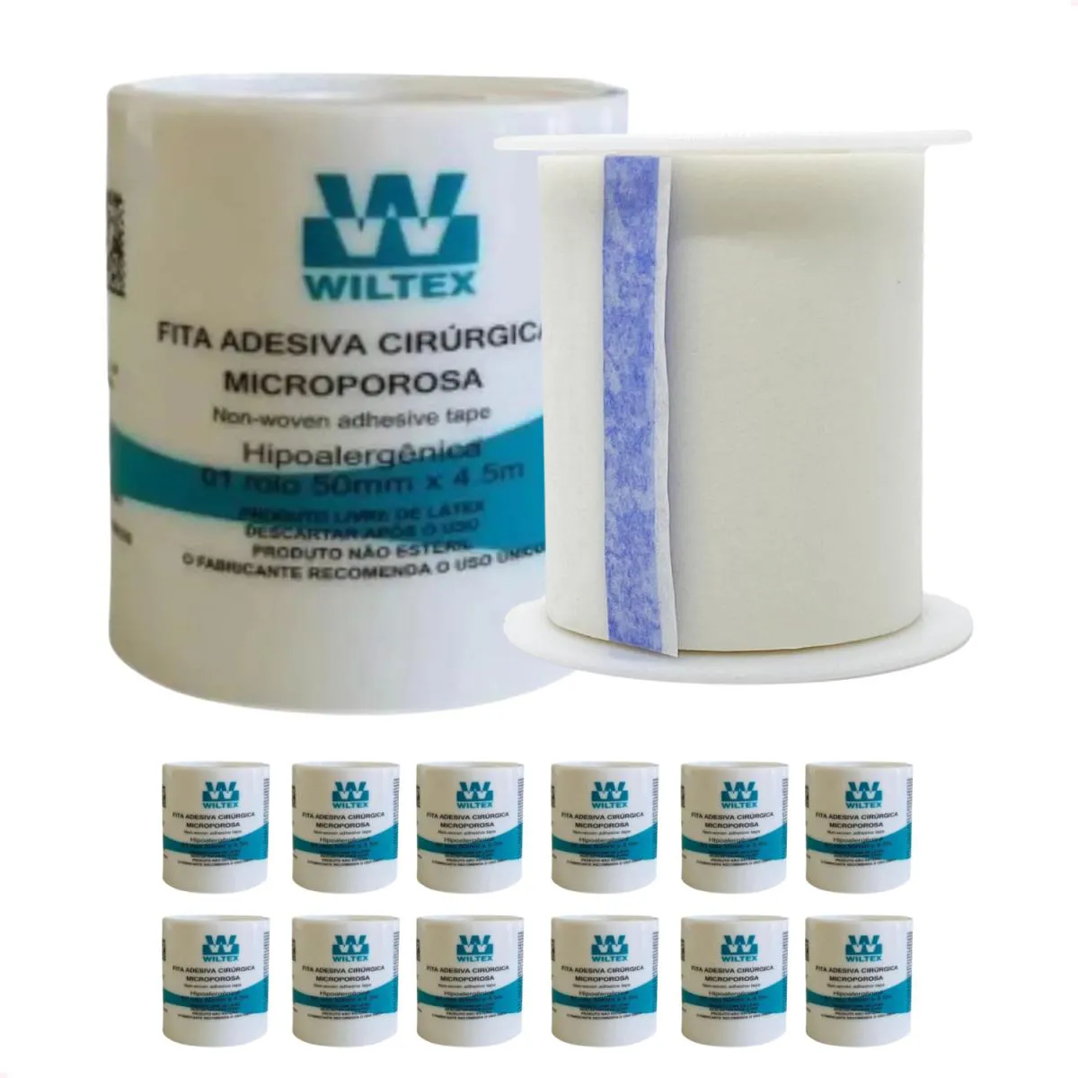 Kit com 12 - Fita Microporosa Hipoalérgica 5cm X 4,5m Wiltex