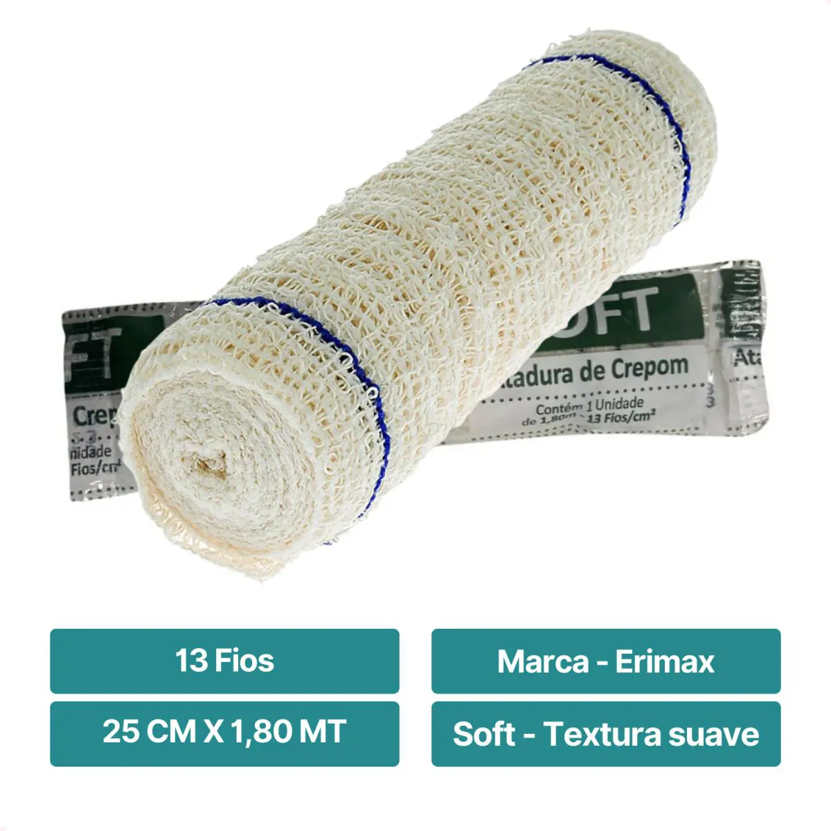 Kit com 120 Atadura Crepom Soft 25cm X 1,80mt 13 Fios Erimax