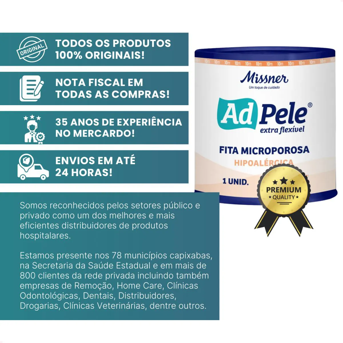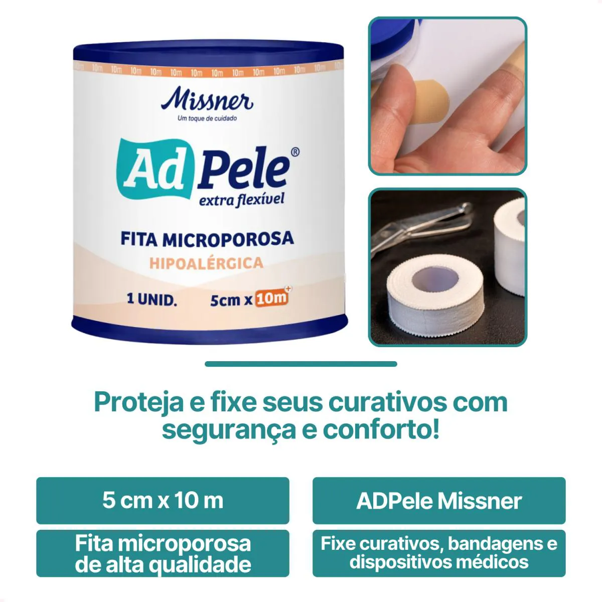 A Fita Microporosa Extra Flexível da marca AD Pele é ideal para fixações seguras e confortáveis, sendo amplamente utilizada em ambientes hospitalares, clínicos e domiciliares. Com dimensões de 5 cm x 10 m, é perfeita para fixar curativos de grande porte, oferecendo respirabilidade, conforto e adesão eficiente sem agredir a pele.