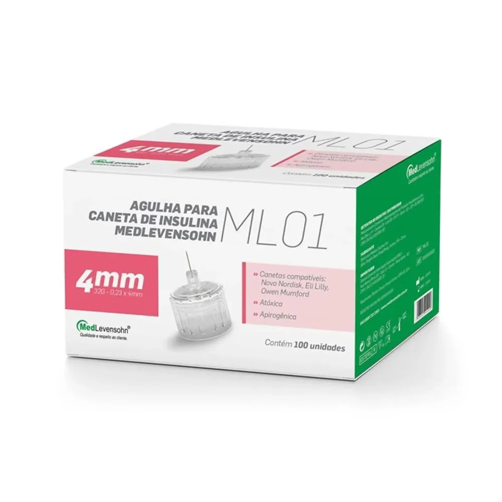 Kit com 2 Caixas Agulha Caneta Insulina 4Mm Medlevensohn