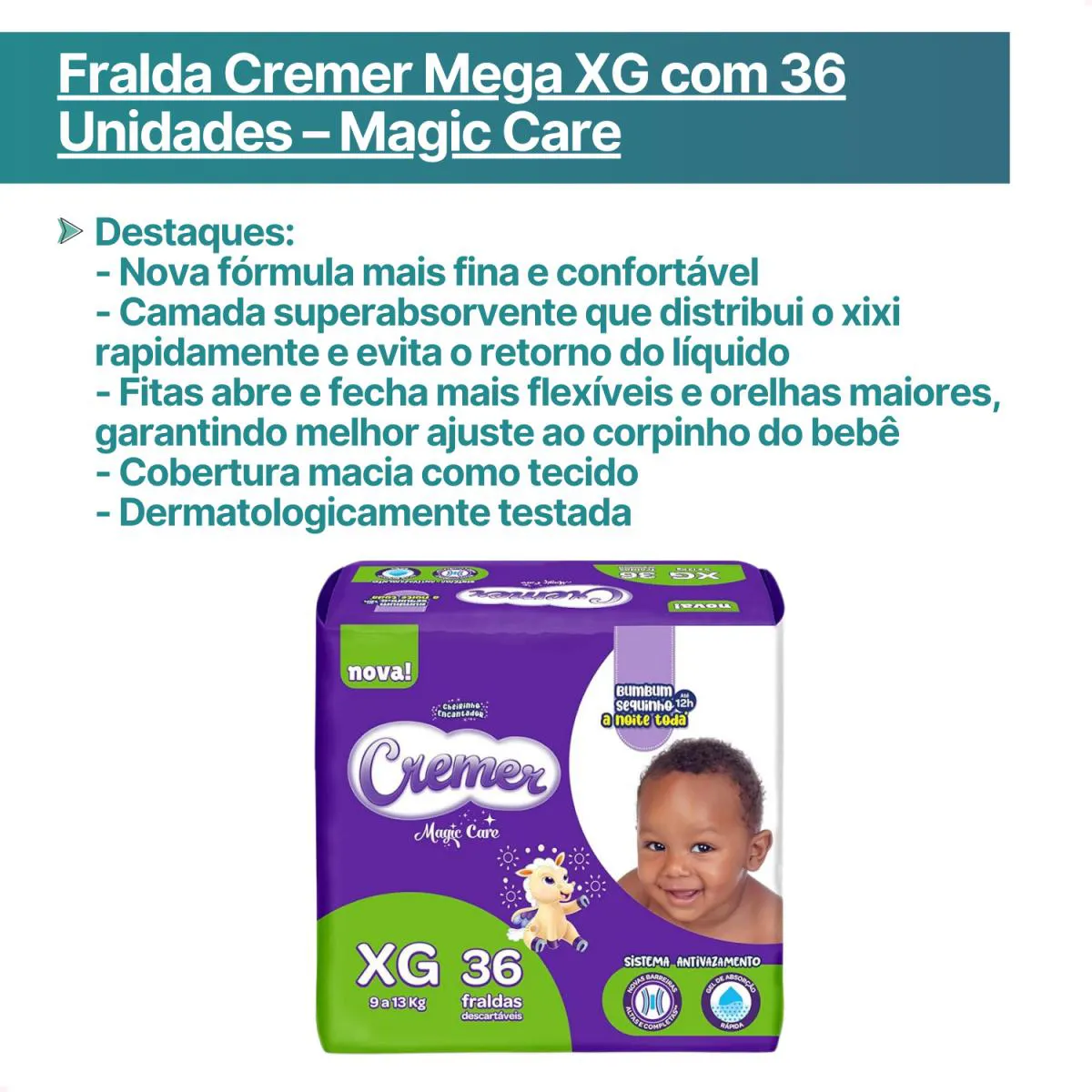 Kit com 2 - fralda Cremer Mega XG com 36 Unidades Magic Care