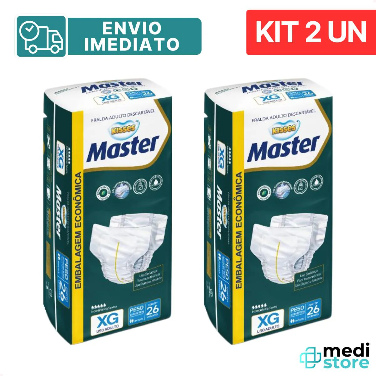 Kit com 2 - fralda Geriatrica Desc KISSES Master Tamanho G - 28 UND EM CADA PACOTE