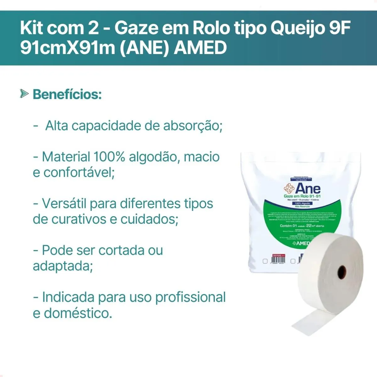 Kit com 2 - Gaze em Rolo Tipo Queijo 9F 91Cmx91M (Ane) Amed